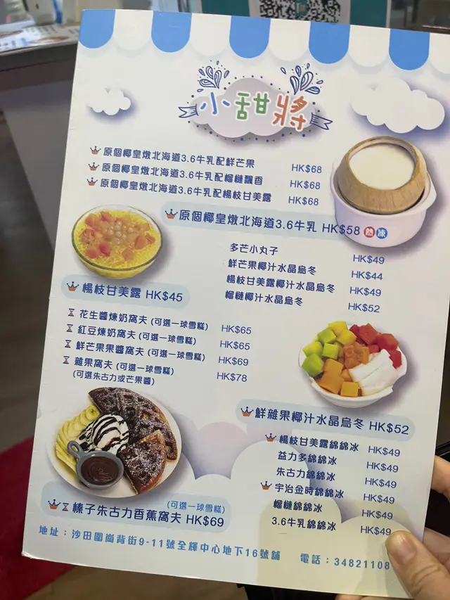 小甜將 (沙田) 網址: https://s.openrice.com/QrbS0Thm900 地址: 香港沙田崗背街9-11號全輝中心B座地下16號舖 電話: +852 34821108