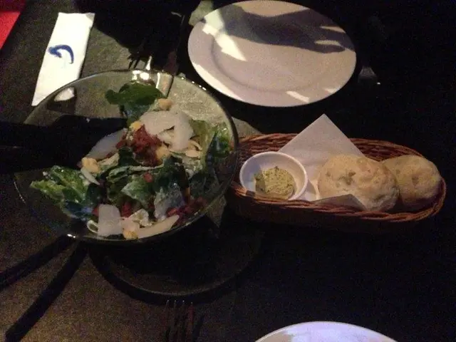 我提早兩日訂左枱,所以唔駛等。一行六個大人加兩個小朋友坐左一張 long table. 座位好闊落,六個人的位其實都夠哂。一坐低,店員主動問我地需唔需要幫手收起BB車,又另外幫小朋友準備較細的水杯,非常細心。睇 menu, dinner 時間有俾唔同人數食的set. 我地揀左一個 Dinner for 4, 另加一個肉醬薯條。落單的時候請waiter 先上薯條氹小朋友,唔駛十分鐘一大盤新鮮熱辣的肉醬薯條,連同牛油蒜蓉焗青口and Ceasar Salad即刻到。Ceasar Salad係六個人的份量!差少少食唔哂。牛油蒜蓉焗青口帶些少辣,底下的薯蓉焗到面頭脆脆,好好食~至於肉醬薯條,小朋友差唔多食哂一大盤,我想試都冇份