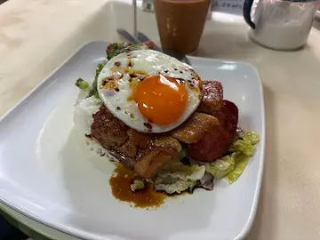 踏入這家飯店,就俾餐牌上嗰幾款招牌菜吸引住了。首先,豬扒出前一丁🍜嘅香氣四溢,吸引到我即刻叫咗一份。豬扒比我想像中厚身,外皮煎得金黃香脆,肉汁鎖得緊緊,一啖落去,肉香、蔬菜甜味、麵身青椒味混合埋一齊,好有層次。再加上,豬扒仲帶有少少蔥香,so入味,鬆化得嚟唔會太肥膩。翻轉餐牌,我又忍唔住點咗碟頭飯🍛。飯量幾大,飽肚至極,睇落真心抵食。哩塊雞翼啊,外皮炸到鬆脆,啜一啜真係脆口到不得了,而且肉質嫩滑,咬落去就即刻爆汁。哼,這種感覺,真係太掂。食飽飲足之後,仲可以來杯熱檸水,夜晚飲嘅話,清新檸檬香味令人抵擋唔住嘅誘惑,一流!嗱嗱嗱,再來講下個漢堡🍔。咬落去,漢堡肉汁四溢,軟嫩之中又帶啲微微嘅彈性,配上新鮮生菜同蕃茄,係可以嘆為觀止。香港茶餐廳概念又有點不同,但平民美食嘅美態始終唔變。咁多款菜式中,真係每款都各有特色。落到口,那種由心到胃既滿足感,令人忍唔住要再嚟幾次。啱哂日日食,唔使慳食。哥吧!下次見到我,肯定喺度叉飯𠱁咗!👋