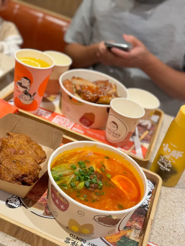 呢日喺尖沙咀同班同事搵餐廳食個late lunch,我哋嚟咗呢個台式便當嘅專門店,叫咗啲便當同台灣小食share嚟食🍱台灣鐵路大排骨滷肉便當呢個係餐廳嘅其中一款招牌菜,面頭有超大塊嘅酥脆大排骨🐷 入面仲有半肥瘦嘅滷肉,超好餸飯,真係好有台式風味。麻辣鴨血滷肉湯寬粉個人幾鍾意食鴨血,呢度嘅鴨血絕對冇令我失望,入口嫩滑,而且麻辣嘅味道同寬粉好夾,入口都幾爽彈🍜台南花枝卷滷肉便當係期間限定嘅新品,面頭有台南嘅花枝卷,中間嘅花枝餡幾彈牙。側邊同樣係有滷肉同埋滷蛋🥚小食♦️鹽酥炸大腸每一件炸大腸都非常厚身,而且外層好酥脆,入口唔會太肥膩,重點係佢完全冇內臟味,清洗得好乾淨🥰♦️小食拼盤入面有四款小食,包括九層塔雞翼、夜市鹽酥雞、鹽蒜四季豆同埋梅香脆地瓜😙 啱晒三心兩意嘅我哋。♦️芋泥肉鬆蛋餅呢個係餐廳另一款招牌菜,蛋餅入面有好綿密嘅芋泥同埋幾惹味嘅肉鬆🍳 芋泥略帶點甜味,同帶鹹味嘅肉鬆相映成趣。飲品呢度有幾款台式飲品,款款都好吸引。我哋嗌咗招牌嘅珍珠奶茶,珍珠煙煙韌韌🧋 另外仲有冷泡茶,鳳梨綠茶有淡淡嘅鳳梨後勁🍵呢間餐廳真係幾抵食,每碟嘅份量都好大,一定會夠飽,仲可以食啖啖經典嘅台灣滋味 。喺尖沙咀返工嘅朋友好值得嚟食吓😄…查看更多