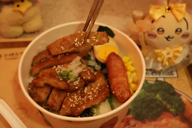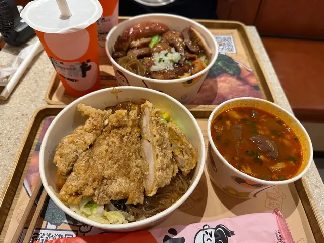 呢日喺尖沙咀同班同事搵餐廳食個late lunch,我哋嚟咗呢個台式便當嘅專門店,叫咗啲便當同台灣小食share嚟食🍱台灣鐵路大排骨滷肉便當呢個係餐廳嘅其中一款招牌菜,面頭有超大塊嘅酥脆大排骨🐷 入面仲有半肥瘦嘅滷肉,超好餸飯,真係好有台式風味。麻辣鴨血滷肉湯寬粉個人幾鍾意食鴨血,呢度嘅鴨血絕對冇令我失望,入口嫩滑,而且麻辣嘅味道同寬粉好夾,入口都幾爽彈🍜台南花枝卷滷肉便當係期間限定嘅新品,面頭有台南嘅花枝卷,中間嘅花枝餡幾彈牙。側邊同樣係有滷肉同埋滷蛋🥚小食♦️鹽酥炸大腸每一件炸大腸都非常厚身,而且外層好酥脆,入口唔會太肥膩,重點係佢完全冇內臟味,清洗得好乾淨🥰♦️小食拼盤入面有四款小食,包括九層塔雞翼、夜市鹽酥雞、鹽蒜四季豆同埋梅香脆地瓜😙 啱晒三心兩意嘅我哋。♦️芋泥肉鬆蛋餅呢個係餐廳另一款招牌菜,蛋餅入面有好綿密嘅芋泥同埋幾惹味嘅肉鬆🍳 芋泥略帶點甜味,同帶鹹味嘅肉鬆相映成趣。飲品呢度有幾款台式飲品,款款都好吸引。我哋嗌咗招牌嘅珍珠奶茶,珍珠煙煙韌韌🧋 另外仲有冷泡茶,鳳梨綠茶有淡淡嘅鳳梨後勁🍵呢間餐廳真係幾抵食,每碟嘅份量都好大,一定會夠飽,仲可以食啖啖經典嘅台灣滋味 。喺尖沙咀返工嘅朋友好值得嚟食吓😄…查看更多