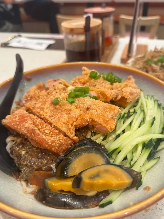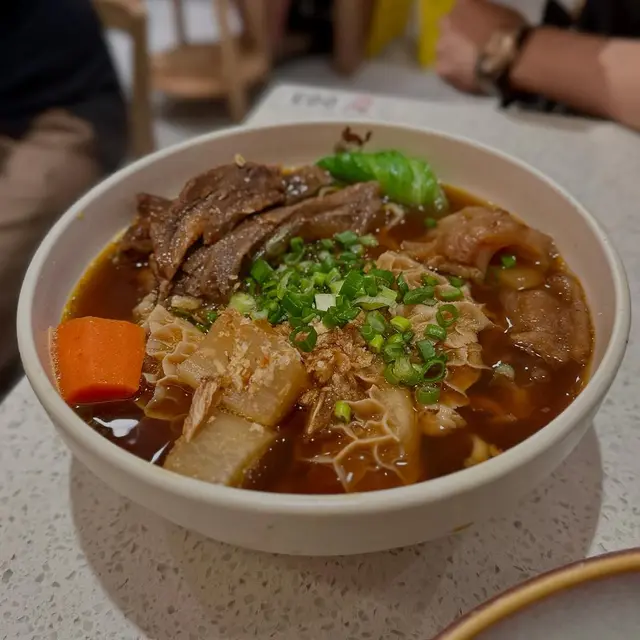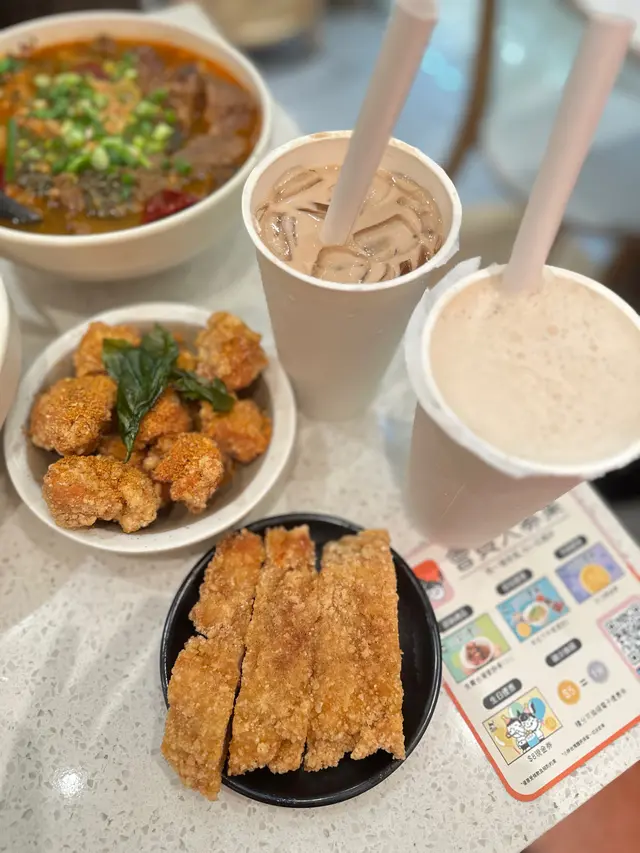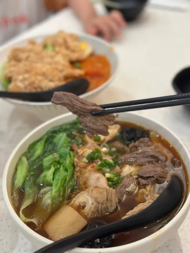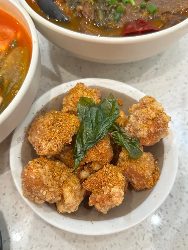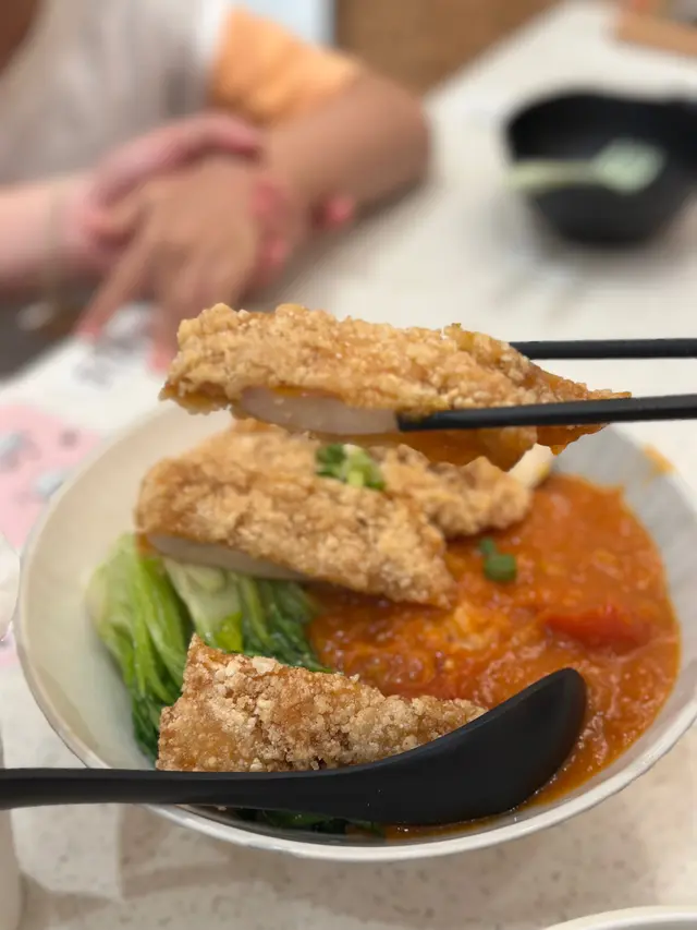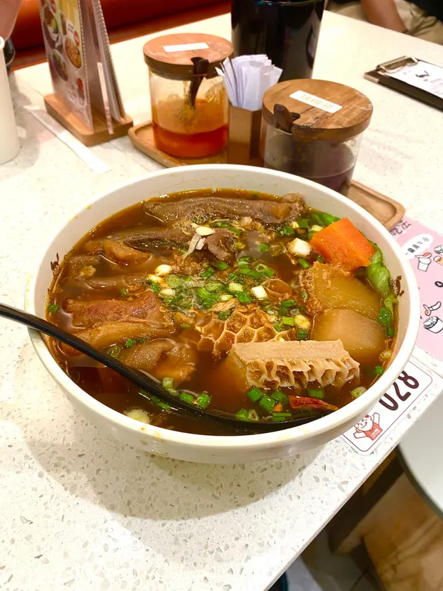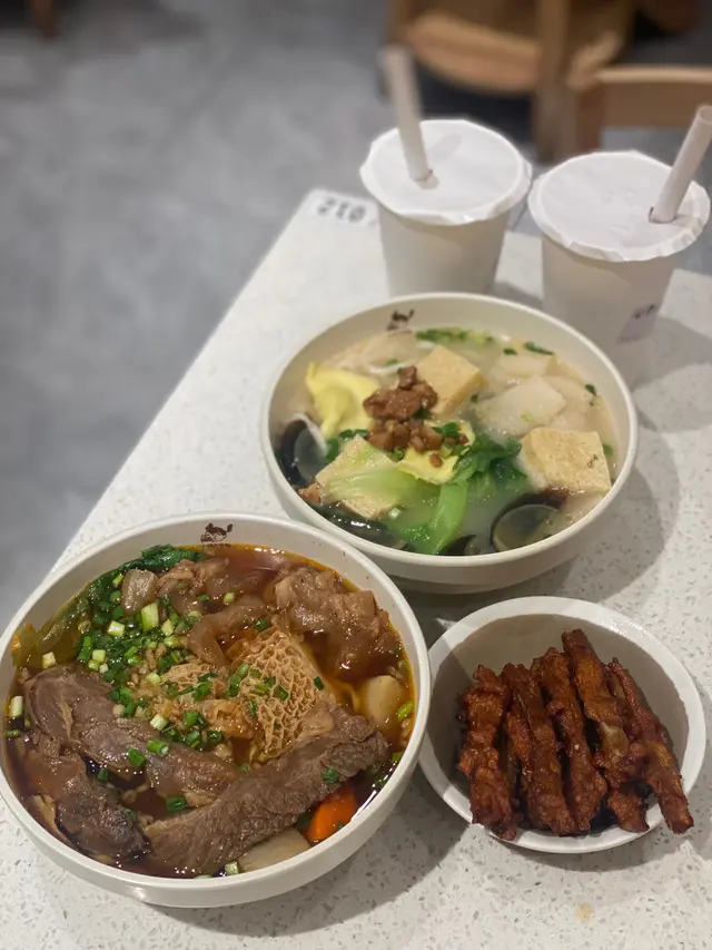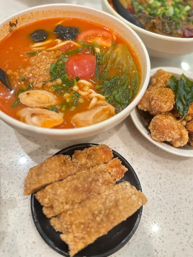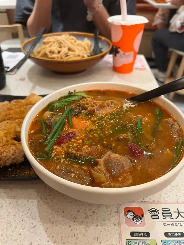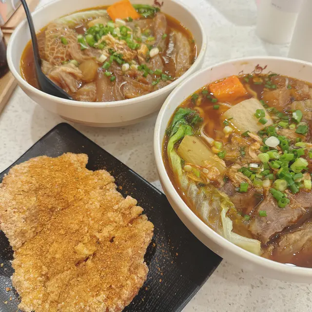 前排同朋友去元朗行街~發現呢度都開咗小胖台灣麵!之前喺屯門食過好好食,今次帶埋朋友一齊試吓🤤入到去空間好大乾淨衛生~裝修簡約風格,入咗QR code落單非常方便,有自助區域茶飲同埋餐具提供👍🏻美食⭐️⭐️⭐️⭐️⭐️🩵濃.純.香牛骨湯麵我加咗手切封門柳、滷水豬大腸、墨汁花枝丸 、魷魚焿 等等的配菜,牛肉湯濃郁鮮甜,落埋自家製黃牛油湯底昇華在一個層次~濃郁醇厚以牛大骨長時間熬煮,釋放骨髓的膠質與油脂,湯色呈現淺褐色,口感滑順濃稠,帶有淡淡中藥香氣但不搶戲。鹹鮮回甘🤤搭配蘿蔔增添自然甜味。麵條粗細適中👍🏻吸附湯汁卻保持彈性。🩵鴨屎香手打檸檬茶底清香~帶有濃郁的蘭花、茉莉花香,尾韻有蜜香或杏仁甜香。發酵輕盈,屬半發酵烏龍茶,茶湯金黃透亮,口感不苦澀,清爽回甘!新鮮檸檬選用黃檸檬+青檸混合,捶打出汁液與果皮油脂,釋放濃郁檸檬香氣~酸度柔和且帶果皮清香。🩵甘梅脆地瓜 地瓜咬下時外皮喀滋酥脆,內裡地瓜綿密香甜,熱氣帶出濃郁的薯香。地瓜沾滿甘梅粉的鹹甜完美中和地瓜的甜膩,超級開胃!🩵鮮茄滷蛋雞扒便當炸雞扒超大份,非常鬆脆🤤連埋蕃茄醬汁超開胃,撈飯一流👍🏻小朋友都好鍾意食😋值得推薦俾大家👍🏻🩵古早味手搖酸梅⭐️⭐️只要下載「小胖會員」 App⭐️⭐️!!免費送鹽酥雞一份!!💡食得多獎得愈多,食得至抵~💡積分換領系統💡迎新優惠,升級優惠💡提供不同折扣嘅優惠券💡仲有增值愈多回贈就愈多嘅預付卡…查看更多