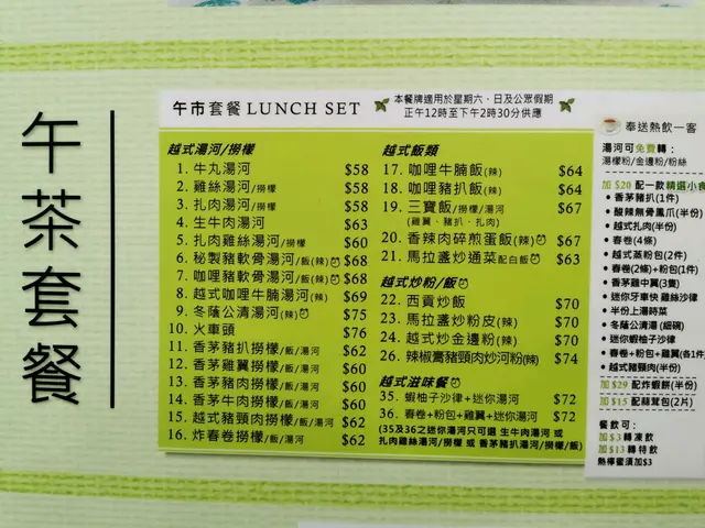 小越南 (美孚) 網址: https://s.openrice.com/QrbS0qRa000 地址: 香港美孚美孚新邨吉利徑5G號地下37號舖 電話: +852 29550218