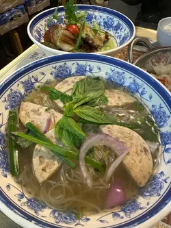 是晚來到荃灣食小越廚,貪佢二人餐好抵食,份量重磅啱晒大食朋友😆入座後先掃碼落單,內餐牌比實體餐牌更多選擇。朋友話佢好肚餓要食兩係餐😆哈哈,咁叫多啲野食先。⭐醉貓香茅豬扒炒河試下炒河粉先,黎到係……金邊粉混合河粉,幾得意同時有兩樣口感😆豬扒香軟好食,河粉炒得香口,正喎👍🏻⭐越式三寶飯再揀左三寶飯,三寶有香茅豬扒、越式扎肉、河內炸春卷,哈哈又係豬扒,啱呀,朋友至愛多肉🤤份量超大好滿足。⭐青咖哩雞扒配法包青咖哩賣相一般,但入口好香,重香料味啱口味喎,除左三大塊雞扒外,仲有唔少豆角、茄子等。法包用牛油蒜蓉烘過,暖笠笠好香呀,再唔埋個咖哩汁好好味,啲汁仲攞黎撈埋白飯唔好晒😆⭐越式法包朋友話佢想食法包又加左客,賣相靚喎😋入面夾左扎肉同豬頸肉,仲有唔少蔬菜,好味又清爽,食落一啲都唔膩,正。⭐鹹檸梳打 & ⭐青檸梳打跟餐特飲都唔使加錢,好抵飲😆哈哈,雖然大部份野都係朋友食晒,但都飽到上心口,叫咁多野都係二百幾蚊,真係好食又抵食嘅小店!…查看更多