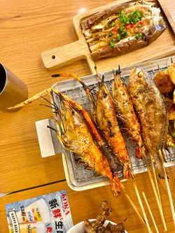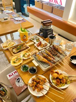收工後,同屋企人去咗將軍澳「KOKA小野人」食串燒,成檯串燒堆得滿滿,勁吸睛,最鍾意依度有得睇電視,同埋設有自助吧提供凍水、暖水俾客人。*此餐廳收取全單10%服務費。烤新鮮大頭蝦3串(單點$59.4),小辣,好大隻,蝦膏味道甘香,蝦肉肉質爽彈,味道鮮甜。小野人蘑菇雞肉野炊飯(單點$58),採用特選日本珍珠米、雞腿肉、冬菇、紅蘿蔔、薑絲、香蔥、特別調製配飯醬油製作,食落類似北菇滑雞飯,每一啖都食到好足料,底部帶有飯焦,食落脆卜卜。北海道蒜蓉粉絲大扇貝2隻(單點$53.6),走辣,表面鋪滿蒜蓉、香蔥、粉絲,扇貝食落好新鮮,略嫌比較細隻。燒雞腿肉串4串(單點$43.2)。燒墨魚滑釀青椒(單點$41.4)。燒翠玉瓜串5串(單點$39),小辣。燒雞腎串5串(單點$39),小辣,口感爽脆,食落好惹味。燒小黃花魚(單點$38),小辣,燒得皮脆肉嫩、色澤金黃,食落好香口。燒墨魚丸串4串(單點$31.2),小辣。小野人蒜蓉燒茄子(單點$29.8),小辣。燒小番茄豚肉捲1串(單點$28),小辣,豚肉片包裹住車厘茄,一食即刻爆汁,味道清新。小野人燒雞翼2隻(單點$27.6),表面鋪有蜜糖、芝麻,食落甜度適中。糖燒牛奶方包2串(單點$18),牛奶方包口感外香脆內鬆軟,配以煉奶、蜜糖、牛油、砂糖、黑芝麻食用,味道香甜。元氣森林水果茶(單點$38),少甜、少冰,採用菠蘿、熱情果、檸檬、青檸、薄荷、蜜香紅茶製作,味道酸甜。@koka.asia.hk KOKA小野人地址:香港將軍澳澳南海岸唐俊街23號MONTEREY Place地下G25A號店舖…查看更多