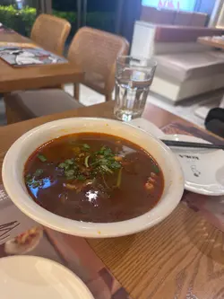 招牌水果茶果然有啲料到,比啤酒杯更大杯嘅玻璃杯,入邊放咗檸檬百香果調製嘅水果茶,杯面仲有一大片新鮮菠蘿覆蓋住,簡直係水果感爆燈。