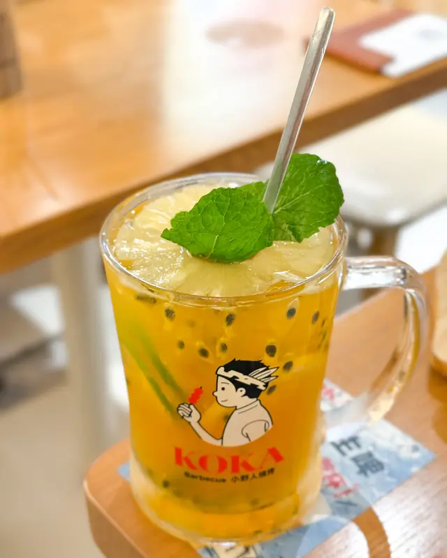 招牌水果茶果然有啲料到,比啤酒杯更大杯嘅玻璃杯,入邊放咗檸檬百香果調製嘅水果茶,杯面仲有一大片新鮮菠蘿覆蓋住,簡直係水果感爆燈。