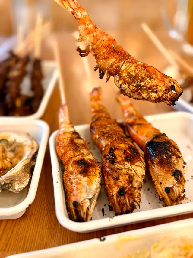 4串起跳,烤海蝦最出海燒味,又有燒烤香味,海蝦大大雙燒到蝦肉好彈牙。