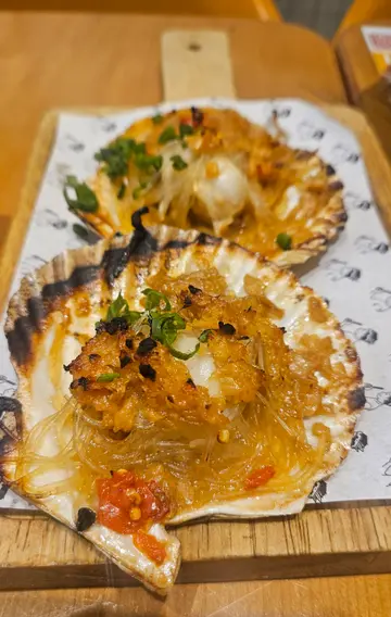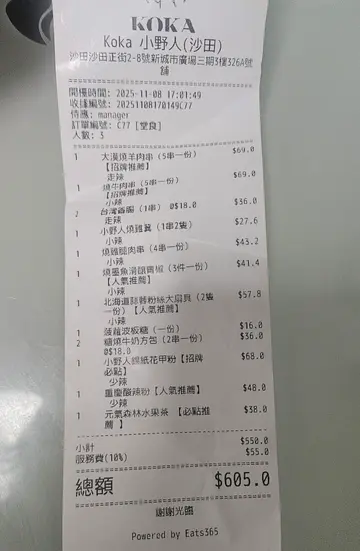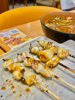 最近去咗沙田「KOKA小野人」食串燒,最鍾意佢哋喺調味處理上好彈性,客人可以按照自己嘅口味Order特別要求。*此餐廳收取全單10%服務費。烤新鮮大頭蝦3 串(單點$59.4),小辣,大頭蝦蝦膏味道甘香,蝦肉肉質爽口,味道鮮甜。燒墨魚串4串(單點$55.2),小辣,墨魚粒好大粒,口感爽脆,食落好新鮮,配以醬燒秘製醬汁食用,味道鹹甜。燒牛舌芯串4串(單點$55.2),採用岩鹽鹽燒,薄切牛舌芯,肉質爽彈,牛味濃厚。蒜蓉烤新鮮生蠔串(兩隻$53.6),小辣,生蠔肉質飽滿,食落好新鮮,配以指天椒、蒜蓉、香蔥食用,味道更佳。北海道蒜蓉粉絲大扇貝(兩隻$53.6),小辣。燒雞腿肉串4串(單點$43.2)。燒墨魚滑釀青椒3件(單點$41.4)。重慶酸辣粉(單點$39.9),小辣、特酸,紅薯粉口感煙韌,湯底酸、辣均衡,配料包括有如花生、炸豌豆、芫荽、香葱、榨菜。燒翠玉瓜串5串(單點$39),小辣。涼拌田園青野菜葉(單點$35),口感爽嫩,味道清甜。小野人燒雞翼2隻(單點$27.6)。台灣小香腸(單點$16),腸衣口感焦脆,味道正宗。蜜桃綠茶(單點$26),少冰,茶味清香,帶有蜜桃果香味道。…查看更多