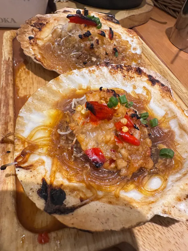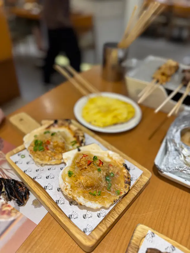 最近去咗沙田「KOKA小野人」食串燒,最鍾意佢哋喺調味處理上好彈性,客人可以按照自己嘅口味Order特別要求。*此餐廳收取全單10%服務費。烤新鮮大頭蝦3 串(單點$59.4),小辣,大頭蝦蝦膏味道甘香,蝦肉肉質爽口,味道鮮甜。燒墨魚串4串(單點$55.2),小辣,墨魚粒好大粒,口感爽脆,食落好新鮮,配以醬燒秘製醬汁食用,味道鹹甜。燒牛舌芯串4串(單點$55.2),採用岩鹽鹽燒,薄切牛舌芯,肉質爽彈,牛味濃厚。蒜蓉烤新鮮生蠔串(兩隻$53.6),小辣,生蠔肉質飽滿,食落好新鮮,配以指天椒、蒜蓉、香蔥食用,味道更佳。北海道蒜蓉粉絲大扇貝(兩隻$53.6),小辣。燒雞腿肉串4串(單點$43.2)。燒墨魚滑釀青椒3件(單點$41.4)。重慶酸辣粉(單點$39.9),小辣、特酸,紅薯粉口感煙韌,湯底酸、辣均衡,配料包括有如花生、炸豌豆、芫荽、香葱、榨菜。燒翠玉瓜串5串(單點$39),小辣。涼拌田園青野菜葉(單點$35),口感爽嫩,味道清甜。小野人燒雞翼2隻(單點$27.6)。台灣小香腸(單點$16),腸衣口感焦脆,味道正宗。蜜桃綠茶(單點$26),少冰,茶味清香,帶有蜜桃果香味道。…查看更多