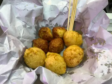 聽聞呢間小食堡就黎吾做⋯特登黎試一試⋯要排左一陣隊⋯前面有5,6個等緊係幾年前都曾經黎食過一次,出名 炸雞髀🍗😍好好味其實有蒸雞髀傢⋯只係冇咁好賣呢間野出名炸物 好食今次黎到⋯最想食既酥炸魷魚鬚都冇哂貨了🦑我叫左4樣野⋯炸雞髀-依舊最好味炸魚蛋- 係煎釀三寶的大大粒魚蛋炸薯餅- 比起麥記,呢間會比較鬆軟d炸墨魚丸- 新鮮,一咬入口仲好熱😋希望下有再機會見到店主啦D野食係偏貴,但勝在新鮮炸起,店主係2公婆,好nice ,仲俾埋個鐵碗我打卡靚少少🤣😂但我影得差,吾好介意🙏🏻