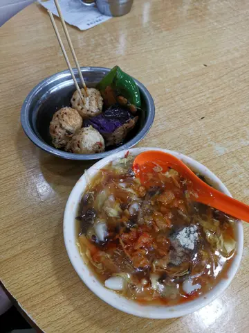 九龍灣除咗有好食嘅米線之外,仲有一間隱世嘅車仔麵檔,呢間車仔麵喺以前牛頭角下邨已經做開一直好受歡迎,之前叫做文記傳統車仔麵。最近好似改咗名轉咗老細不過味道一樣依舊啊!環境雖然迫迫地,都有油煙味,但都勝在抵食,喺九龍灣街坊嘅童年回憶🙏🏻🍴豬頸肉牛腩咖喱魷魚油麵 $51 (8/10)餸同埋麵都好足料,豬頸肉係必食,食落去彈牙又有椰香味,牛腩煮到非常軟腍又唔黐牙,咖喱魷魚爽口彈牙咖喱汁好香濃,油麵係粗身有口感,一定要叫辣汁,辣得來好過癮,又帶少少薑味,香得有層次,同出面食嗰啲麻辣醬好唔同,真心好食又飽肚。之前食過豬腸係用新鮮大腸去整同出面嗰啲好唔同,如果鍾意食大腸嘅話一定要試吓😆🍴煎釀三寶 $22 5件 (7.5/10)炸魚蛋係必叫,佢哋嘅魚蛋係攞鯪魚肉,再打到起膠,食落去係有鯪魚肉嘅香味,同時又好煙靭,講真未食過其他魚蛋有呢一個味,好食!推薦指數: 8/10舖頭細細乜都有得食,炒粉麵,車仔麵,煎釀三寶腸粉燒賣,真係勾起以前喺牛頭角下邨食嘢嘅回憶,個人推薦車仔麵煎釀三寶,仲有個碗仔翅加魚肉再加辣菜譜都係好好食,咁多年來味道都無變,依然keep到質素!