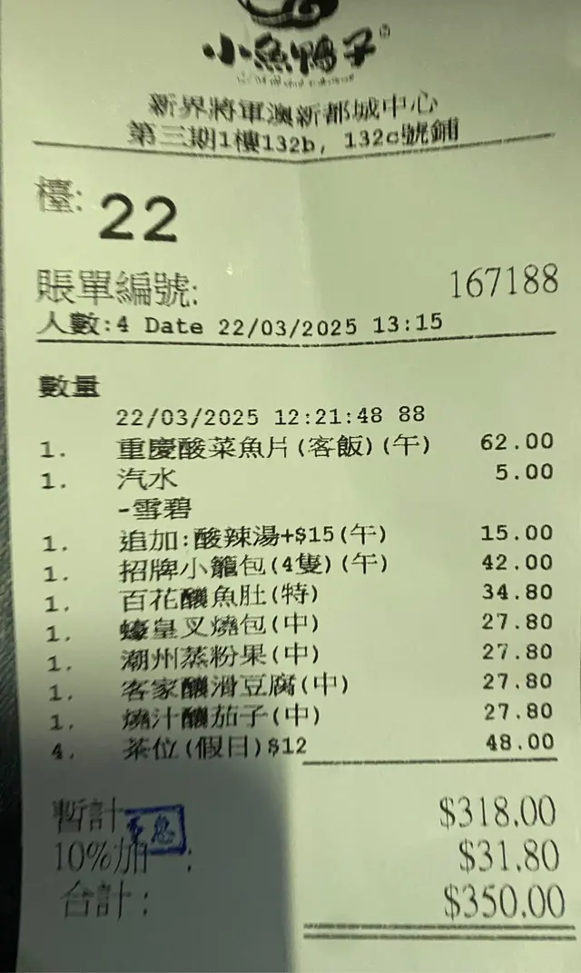 小魚鴨子 (將軍澳) 網址: https://s.openrice.com/QrbS0d5SB00 地址: 香港將軍澳寶琳貿業路8號新都城中心三期1樓132B-C & OSA132B-C號舖 電話: +852 26037188