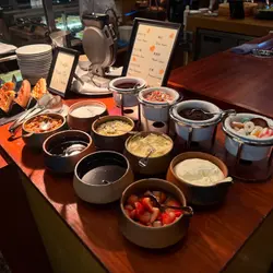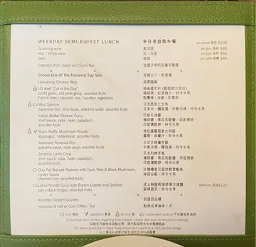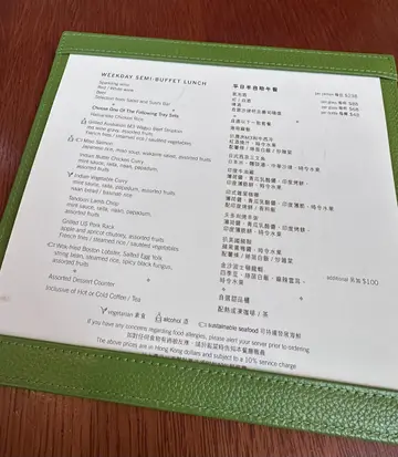 朋友預訂了尖沙咀凱悅酒店咖啡廳的自助晚餐(買2送2,折後每位$473)食物選擇算豐富,有冷海鮮(長腳蟹、青口、小龍蝦、煙三文魚、螺),刺身、壽司。有日式天婦羅(蝦、秋葵及南瓜)鐵板燒牛柳粒。中式熱葷包括蒸沙巴、椒鹽蝦、上湯龍蝦鉗、瑤柱西蘭花、豬腳薑、辣煮海鮮、醉雞、燒味等。西式有西冷肉眼、豬鞍、燒龍蝦、烤雜菜、螺絲粉。另外有印度咖哩、即煮粉麵、燉花膠雞湯。另外,每位有一客炆鮑魚。甜品方面,有楊枝甘露布丁、桂花糕、蛋糕仔、tiramisu,亦有麵包布丁、窩夫餅及雪糕等。烤龍蝦肉質比較堅韌,這方面有點失手。燒肉眼肉汁香濃,但同樣堅韌。鐵板燒牛柳粒過熟,較難咀嚼。豬鞍也稍欠嫰滑。第一碟主菜已令我有點失望。相反,海鮮冷盤質素不俗,煙三文魚有鹹香,滑不溜口;長腳蟹充滿海水味,新鮮而肉質一梳梳的。小龍蝦肉質煙韌。帶子刺身新鮮彈牙,甜美動人。蒸龍蝦清新而肉質更爽口,仍保留鮮味,絕對要嘗試。鮑魚入味,軟腍,醬汁的調味恰到好處。豉汁青口及椒鹽蝦味濃,但各類燒味不算美味,口感亦堅韌,質素比普通中式酒樓的還要差。花膠雞燉湯用料一般,味道清醇,有雞肉及龍眼,但很難才撈到幾片花膠碎。甜品全部用心製造,賣相精緻,一絲不苟,質素比主菜優勝。Tiramisu簡直是人間滋味,入口濕潤軟滑,絕對不可錯過。楊枝甘露及桂花糕軟滑微甜,味道驚豔,帶來幸福感。其他甜品亦手功精緻,味道不俗。再有溫暖甜美的麵包布丁,以及窩夫餅,夾著香滑的Haagen Daze雪糕,味道昇華而有層次。服務方面,每位侍應笑容滿面,細心有禮。環境採用木系裝修,優雅舒適。 …查看更多