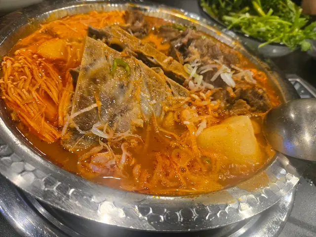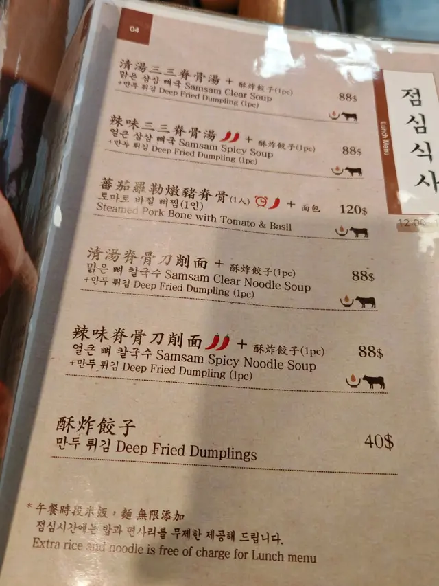 隱身於尖沙咀金巴利道韓國街的「삼삼뼈국」,以地道韓式湯鍋聞名。黑色門面低調卻總見人龍,週末晚市更是一位難求。這次試了招牌辣味湯套餐(2人份$572),雖價位偏高,但體驗後絕對物超所值。泡菜無限添加。主角辣味湯鍋沸騰上桌,紅艷湯底翻滾著誘人氣泡。選用豬脊骨熬製六小時以上,加入韓式辣醬、大醬與新鮮蔬菜燉煮,湯頭濃郁層次分明—但吾太辣。豬脊骨肉量驚人,輕輕一扯便骨肉分離,吸附湯汁後更顯鮮美。隨湯附贈的韭菜與紫蘇葉是畫龍點睛之筆,投入滾湯中瞬間激發香氣,令人食指大動。驚喜之處在於隱藏吃法:湯喝至三分之一時,可請店員幫忙製作「終極炒飯」。將剩餘湯汁與紫菜、泡菜、韓式辣醬在熱鍋中翻炒,米飯吸收濃縮湯精華,形成微焦鍋巴,香辣惹味程度堪稱靈魂之作(炒飯另加$58絕對超值)。香煎韓豚肉片。搭配酸菜,平衡油膩感之余更添風味層次。雖然二人消費$572在韓餐中屬高檔價位,但份量足夠三人分享,且食材品質與烹調技巧皆屬上乘。…查看更多