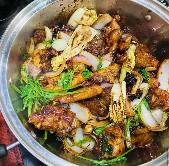 忽然心血來潮想食雞煲,想就要行動!gogogo!招牌雞煲 $168 半隻雞半隻雞兩個人已經好足夠,大大份,好足料,大量既芫茜,洋蔥,香蔥,仲有花椒八角,叫左小辣,愈食愈香口,愈食愈麻,好過癮,最驚喜係配埋娃娃菜同埋豬皮,吸哂雞煲既精華,好入味😋鬼馬墨魚 $38呢個超特別!佈滿蟹籽既墨魚滑,配上香脆既油炸鬼,呢個淥既時候有小技巧,將有墨魚滑果面放入湯,再淥一分鐘,就可以保持到油炸鬼脆脆既口感即炸響鈴 $63即炸真係有差別!好香既豆香味!大大條,索滿哂湯汁,超好味!🤩皇帝菜 $49打邊爐緊係唔少得皇帝菜,絕配💯…查看更多