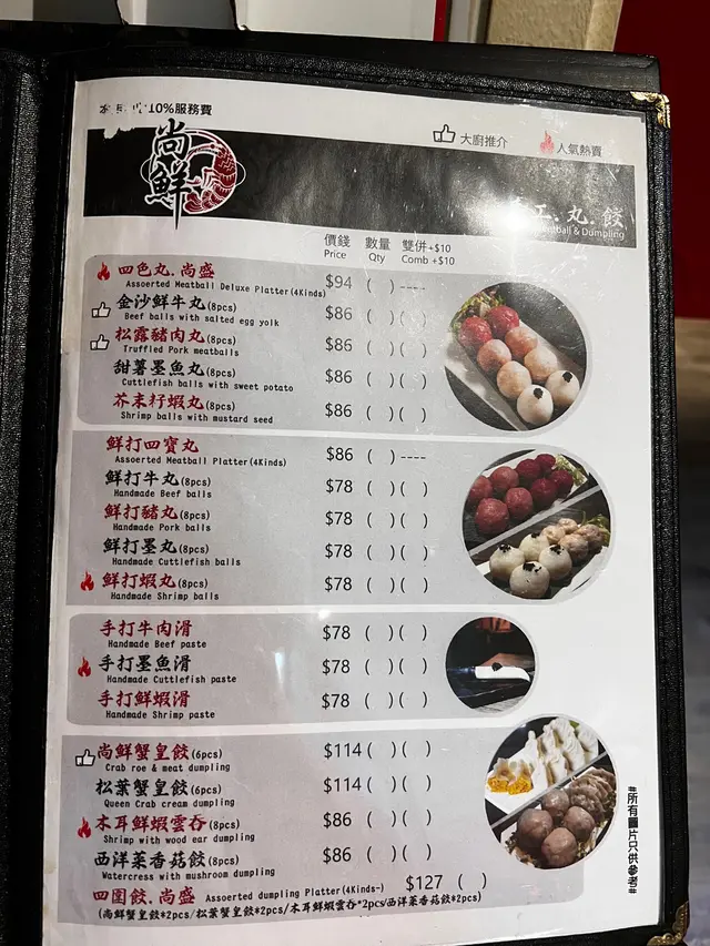 最近去咗佐敦嘅尚鮮海鮮料理,佢哋嘅火鍋選擇真係好多,而且食材都好新鮮二人套餐,有手切安格斯牛同鮮打四寶丸,仲有好多配料。我哋叫咗個手切安格斯牛,牛嘅肉質好嫩,而且油脂分佈均勻。牛嘅味道好濃郁,食落好滿足。我哋將牛片涮到七成熟,入口即化,真係好好食。我哋仲叫咗個鮮打四寶丸,丸嘅口感好彈牙,而且味道都好鮮味。四寶丸分別係牛肉丸、豬肉丸、鮮蝦丸同墨魚丸,每種丸都各有特色。牛肉丸嘅肉味好濃郁,豬肉丸嘅口感好彈牙,鮮蝦丸嘅蝦味好鮮甜,墨魚丸嘅墨魚味好濃郁。…查看更多