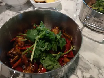 金百利商場已變成食市商場, 呢間鋪起3樓, 答LIFT OR 扶手電梯已經上到去。坐位好闊落。 睇睇MENU 有得散叫, 亦有SET DINNER , 亦有D 呃LIKE 甜品。咁同幾個朋友一人叫一個SET DINNER, 包前菜, 主食 同埋$32 蚊以下的飲品, 超過$32蚊補差價。前菜有三款: 試曬三款, 好一般的水平。花雕醉雞翼: 聞就好香酒味, 食落冇咩味, 唔夠滑。青瓜木耳涼拌: 夠大份, 切到細細粒易入口, 但味道唔夠鹵水蛋: 不過不失主食排骨藥膳新竹米粉, 湯底好香藥膳咪,係好飲, 但有D 咸。排骨燉得夠淋, 整體OK宮保雞丁: 岩鍾意食辣的朋友, 夠火喉 , 夠麻同辣。京蔥炒牛肉: 牛肉夠滑身, 京蔥炒得好淋滿滿牛肉味。略嫌牛肉太大舊,切細小小會好D。鹽酥雞肉燥飯: 鹽酥雞炸得夠乾身唔油,香脆可口, 肉燥油香, 送飯一流。野飲叫左D穩陣野, 荔枝紅荼, 鮮水果茶 。 唔會太甜, 岩岩好。總括黎講, 起銅鑼灣食一餐晚飯, 80蚊左右 又可以坐好耐而且又好坐, 野食就不過不失都值得去既!…查看更多