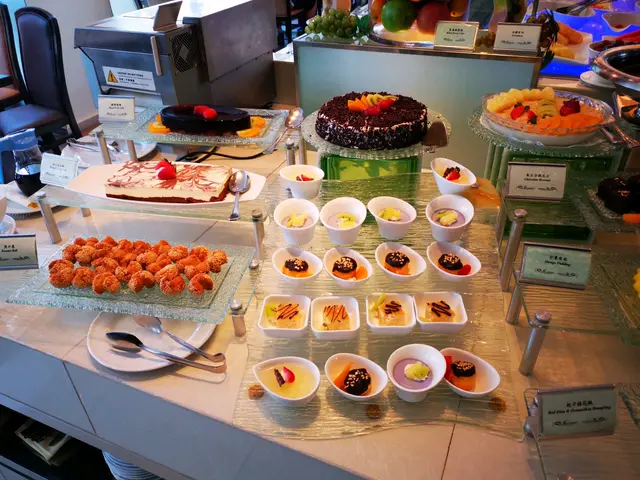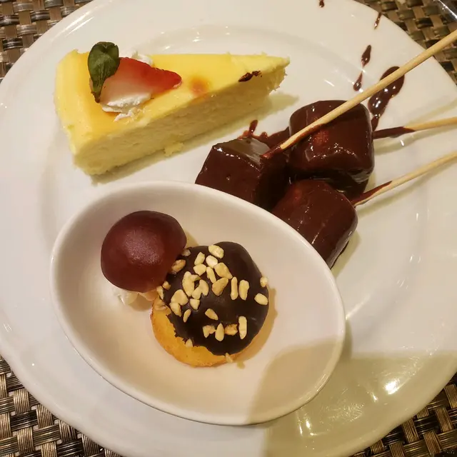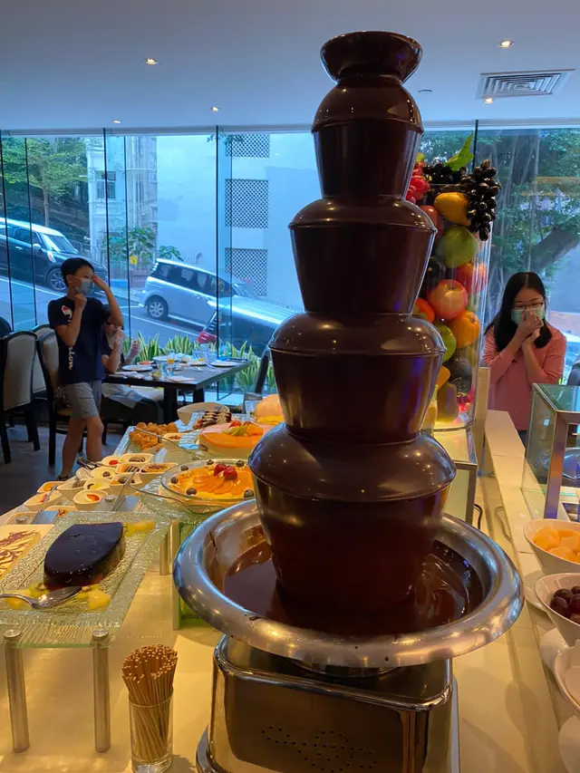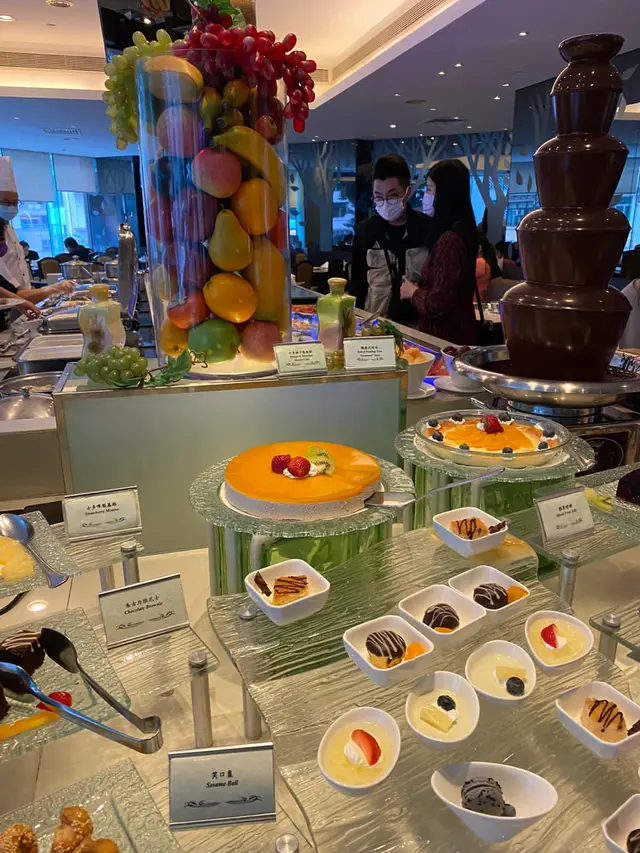 甜品類有各式各樣的蛋糕、布甸、朱古力噴泉、桂花糕及笑口棗等,另有自製薄烤餅、椰汁西米露,以及牛奶公司的雪糕及雪米糍,相當豐富呢