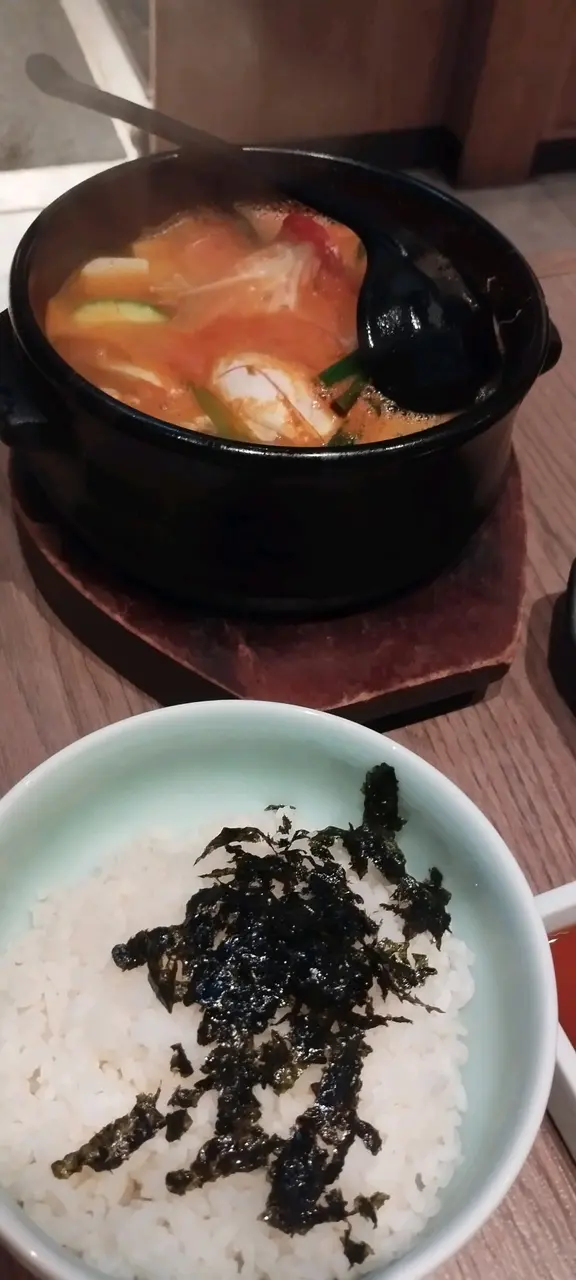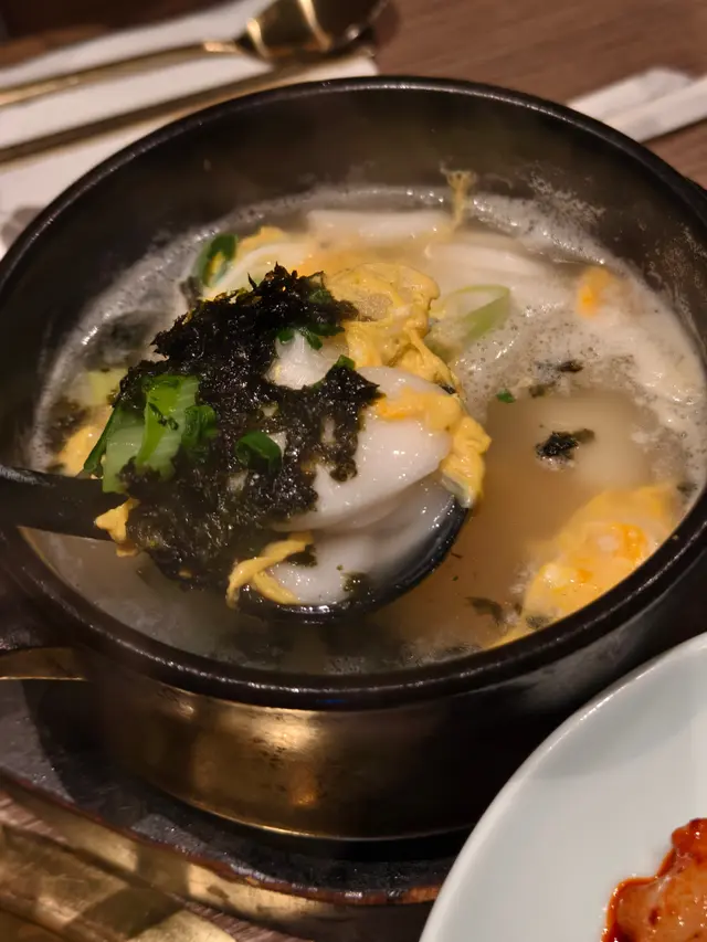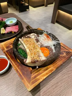 山洞食堂呢個名顧名思義就係裝修到好似係洞穴⛰️咁,有石頭🪨既浮雕,行輕奢色調,又有唔少卡位坐都幾chill~ 野食方面除左燒物🔥之外,都有啲係即場喺你面前整都唔錯👍🏻(5 😍 係滿分,🤩係半分)日本產和牛肩肉盛 - $268 (好味指數:😍😍😍😍)開頭首先用檸檬🍋掃下個爐面就無咁易燶又唔會搶火~ 牛肩肉指既係肩胛肉,有唔同既部位,肉味幾香濃,肉質柔軟,有細緻既油花,燒完🔥之後有焦香又入口即化~醬油蝦 (4隻) 🦐 - $188 (好味指數:😍😍😍😍)啲蝦🦐幾大隻同新鮮,鮮嫩彈牙,連埋微甜、有鹹香又惹味既豉油幾好食😋,亦都有提鮮既效果~ 而且蝦頭🦐都有幾豐腴醇厚既蝦膏幾好~燒鵝肝多士 (2件) 🔥🦢🍞 - $195 (好味指數:😍😍😍😍)店員會幫手燒🔥,鵝肝🦢綿密軟滑,味道醇厚油潤,如果味道再濃啲就perfect爐~ 配埋烘到酥脆又有牛油🧈香味既多士🍞,同埋酸酸甜甜既無花果醬🟤一齊食就無咁漏~ 跟住攞埋鵝肝油🦢同埋牛油🧈去炒雜菌🍄🟫,香口軟腍~蔥燒厚切牛舌 🔥🐮👅 - $178 (好味指數:😍😍😍🤩)幾得意既牛舌🐮👅,厚切完中間開到個窿,去將啲蔥蒜🧄放入去,質感軟嫩,牛味🐮香濃,如果再腍啲就更加好啦~ 啲蔥幾清香,可以令到整體清新香口啲~嚴選牛骨髓石頭鍋飯 🐮🦴🪨🍚 - $225 (好味指數:😍😍😍🤩)店員會即場喺你面前幾成條牛骨髓🐮🦴刮落啲飯🍚到撈勻,口感順滑,有奶油🧁同堅果🌰鮮味,令到個飯有焦香得黎香口啲~ 亦有惹味既蒜蓉🧄、香口既牛肉粒🐮、滑溜既蛋黃🟡、清香既冬菇🍄🟫同埋微甜微辣🌶️既韓式辣醬,層次幾豐富~韓式泡菜煎餅 🌶️🥬🔥🫓 - $132 (好味指數:😍😍😍🤩)望落係鮮豔既橙紅色,食到有爽口既泡菜🌶️🥬,酸酸辣辣🌶️幾開胃🤤 而且塊餅🫓煎香左,如果濕少少同多料少少就更加好啦~菠蘿 / 提子梳打 🍍🍇🍹- $42 (好味指數:😍😍😍😍)有芳香馥郁既果香,酸酸甜甜,加上有氣既梳打🍹幾有刺激感,可以消濟解渴好味指數:😍😍😍🤩推介指數:😍😍😍🤩…查看更多