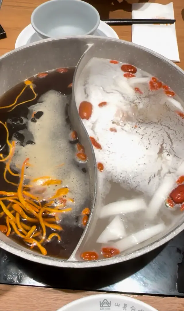 最近天氣開始涼,又到了打邊爐的季節!今次來到葵芳的「山見台式火鍋」😁體驗了一場結合了台式風味與港式情懷的吃到飽盛宴。🩵環境與服務餐廳的環境寬敞舒適,裝潢簡潔明亮,讓人用餐時感到放鬆自在。呢度貼心地提供了圍裙,避免用餐時湯汁濺到衣服☺️ 這個小細節非常加分!點餐方式是透過手機QR code,方便快捷。特別有趣的是,店家還提供了沙漏,提醒食客食材的最佳烹煮時間,既實用又增添了用餐的樂趣。🧡湯底與食材作為台式火鍋