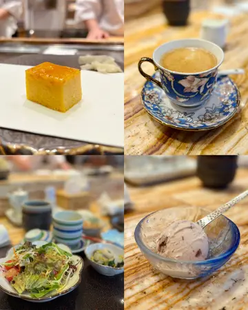 壽司+天婦羅呢個組合太新鮮🤤🤤🤤我同🐗喺阿媽家姐group 度一見到有大神分享即book😍😍落筆寫初訪(五月頭)時已經二訪左🙈🙈但我都會分開寫的💕—————————𝑴𝒚 𝑯𝒐𝒏𝒆𝒔𝒕 𝑹𝒆𝒗𝒊𝒆𝒘 🍽 𝗧𝗮𝘀𝘁𝗲 :🌟🌟帶左頭盔先,純粹非專業飲食體驗分享💕大將:鴻師傅+榮師傅▐ 🐗廚師發辦16件壽司。天婦羅定食 $640▐ ▐ 🐷廚師發辦14件創作壽司定食 $580▐ 兩個set都可以自由選擇要幾多件壽司同天婦羅,因為我地唔想食太多炸野,我地兩個都選擇要4件天婦羅其餘都係壽司💕以下有🐗係16件set先有,有🐷就係14件set先有💕🍴前菜茶碗蒸沙律🍣壽司石鯛魚 烏魚子粉18公斤平靜魚(油甘魚近親 )+海苔醬赤魷魚+青柑汁北海道野生櫻鱒魚+三文魚籽野生深海池魚北海道帶子+柚子皮赤貝 🐗木草燻燒青魚瀨尿蝦 炸櫻花蝦 蝦膏🐷海膽杯🐗海膽壽司燒拖羅🐗小肌🍤天婦羅(師傅建議食法)蝦頭 (鹽/汁)天使蝦 (鹽)小香魚 (汁)鮑魚 (唔點)熒光魷魚 (鹽/汁 )🍴小食+甜品/飲品蝦麵豉湯蒸焗焦糖玉子布丁雪糕 (紅豆)。咖啡見到group入面好多人都揀全天婦羅,其實鴻師傅嘅壽司都好好食👍每款都好有心思咁搭配唔同調味😋開頭魚料對我地黎講較凍,後來溫度就好適中,全部都好食,其中我最鍾意嘅有赤貝、燒拖羅同埋mvp 瀨尿蝦配炸櫻花蝦+蝦膏 😍😍😍 🐗就喜歡小肌,呢件我個set係冇嘅🥲🥲🥲。但整體黎講我地都好滿意同覺得好味😋天婦羅真係非常高質,麵衣薄而輕盈,完全唔油膩,即使係即炸都冇熱氣嘅感覺,食完冇喉嚨痛👍每一件都好好食,個人最愛熒光魷魚同鮑魚,🐗叫我喺尾度點少少鹽,一咬爆漿勁好味😋😋鮑魚炸完質地仍然好嫩🤤🤤佢地嘅玉子燒係另一種,好好食好似布甸咁😭一試難忘。甜品最後我揀紅豆雪糕,🐗揀左咖啡作結。雪糕就正正常常,但杯咖啡非常好飲,都係炭焙咖啡😍😍🌐𝗔𝘁𝗺𝗼𝘀𝗽𝗵𝗲𝗿𝗲 : 吧枱位較迫,佢地之後搬新店會分返開天婦羅同壽司,希望搬左新店會闊落d,期待三訪🤤🤤🤵♂️ 𝗦𝗲𝗿𝘃𝗶𝗰𝗲 : 今日鴻師傅1對4,榮師傅就1對目測10😂但無損服務,每件都有介紹,值得一讚係餐廳有位靚女女店員好細心同醒目,把聲非常溫柔,服務非常好👍💰 𝗩𝗮𝗹𝘂𝗲 : 一訪幸運地坐正師傅面前,所以一訪條片影得靚d😂😂😂師傅好用心創作壽司,入門Omakase set$400幾都有,天婦羅非常高質,真係我食過最高質嘅天婦羅🤤🤤(利申:少食炸野)…查看更多