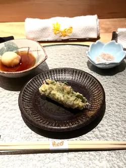 別具用心的廚師發辦天婦羅餐廳,全吧枱座位,可一邊觀賞師傅為你烹調美味炸物佳餚,一邊品嚐每道精緻菜式,衝擊視覺、味覺和嗅覺,今日預約了駒師傅享用Chef's Selection Tempura Set。廚師發辦天麩羅Chef's Selection Tempura Set前菜北海道鱈魚配自家製豆腐薄薄炸漿包著魚肉,魚肉嫩滑鮮味,配上豆腐,清新淡雅享用天婦羅前,會奉上調味海鹽,咖喱及海藻鹽,給客人自行調味,每款別具特色。天麩羅8件✨花竹蝦鮮甜爽口✨目光魚外層香脆魚肉細緻幼滑✨瀨尿蝦薄漿外皮酥,沾上海鹽,鮮味加倍,絕不油膩✨沙錐魚肉質較厚實,魚味濃郁✨墨魚色澤雪白,彈牙鮮味,完全不韌✨招牌鮑魚鮑魚已調味,不加配任何調味醬汁,也鮮味處處✨冷菜- 柚子凍柚子清香消滯,整頓一下味蕾✨天麩羅蝦餅飯食材豐富,蝦餅混入蝦肉和墨魚粒,配上秘製醬油和流心蛋,十分滋味✨赤味噌湯✨甜品和歌山富有柿或士多啤梨岩浪天扶良日本料理📍銅鑼灣糖街25-31號Sugar+ 17樓…查看更多