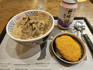 呢間嘅牛扒一直都好想試,終於可以一嚐佢嘅牛係咪真係咁正。佢食物嘅款式好多,簡直花多眼亂,樣樣都想食,下午茶勁抵,40幾蚊就有個飯加烏冬嘅set,又有幾款拉麵可以揀,但係我嘅目標係食牛,其他嘢食等我食埋呢餐先再諗。我地點咗封門柳同牛柳兩款,我地加錢轉套餐,包一隻溫泉蛋、和風湯同汽水,一人平均160幾蚊都OK。牛肉係即叫即切,保證新鮮封門柳嘅牛味比較出,肉質都夠淋,即便响個鐵板度慢煮,都唔會影響咗佢嘅肉質。蒜味夠香,我冇諗過佢會比咁多。牛柳就真係比下去,店內都有介紹過封門柳嘅牛味係第一,牛柳係爭啲嘅,但係冇理由兩個人叫同一款嘢。雖然佢個牛味係冇咁突出,但係肉質同樣都夠淋。我哋改set加多兩個小食同汽水,我哋同樣都係點咗個溫泉蛋、和風湯 ,溫泉蛋就正常嘢,和風湯就麻麻地,感覺似一堆下欄嘢煲出嚟嘅湯,味道一般。店內唯一嘅特色係NO SERVICE,由攞餐到食完放去回收架都係自己嚟,唔好諗住比百幾蚊會有咩服務,所以大家要學習一下自律。有機會我反而會想試下佢個下午茶餐,希望會再為大家報導。…查看更多