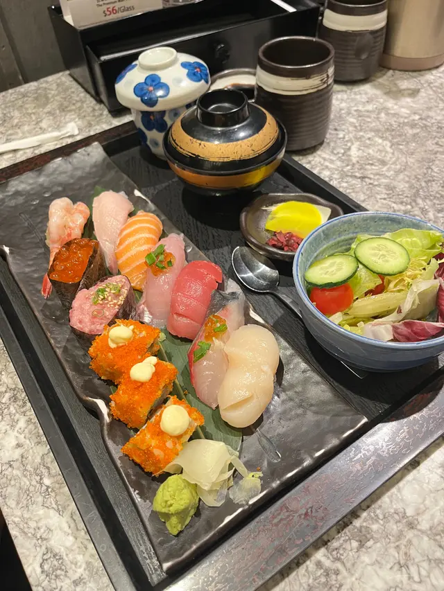 今晚專登試咗呢間人氣日本料理店,點咗壽司定食套餐,內容幾豐富。主角壽司質素確實有驚喜——三文魚腩油脂甘香,赤貝爽脆鮮甜,醋飯溫度同酸度都平衡得幾好,飯粒握得實而不硬,可見師傅手勢唔錯。定食跟配嘅牛肉烏冬亦係亮點:湯底清甜唔膩,烏冬滑溜,肥牛份量足料,浸住湯食好暖胃。特別追加嘅半打生蠔更加係高質!蠔身飽滿,入口creamy,帶淡淡海水味,完全無腥氣,配上酸汁啱啱好,食完仲想encore。不過價錢確實進取,人均消費接近$230,雖然食得飽,但性價比未必人人接受。服務方面略為失望,雖然店員有禮貌,但晚市未滿座,人手明顯唔夠,舉手成日都要等好耐先有人理,趕住食嘅話可能會冇耐性。整體而言:食物質素對得住價錢,但服務同節奏可以再調整。如果係追求食材質素、唔介意貴少少,呢間值得一試;但若果預算有限,就可能要等特別日子先嚟奢侈一下了。今晚到訪日本料理店,壽司定食配牛肉烏冬,追加半生蠔非常鮮甜爽滑,令人驚喜!壽司質素高,魚生新鮮、醋飯平衡,整體味道出色。惟價錢偏貴,未必人人接受得到,但份量足夠食得飽。員工服務態度一般,舉幾次手都無人理,有待改善。如果價錢調整返多少,會更加理想。…查看更多