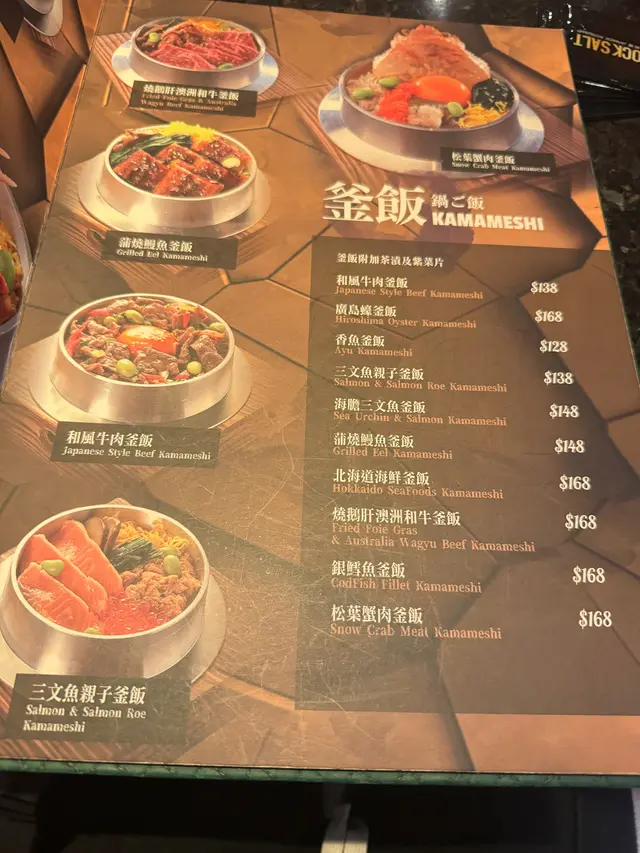 餐廳主打日本傳統釜飯及海鮮磯燒,特別從日本訂造釜飯機,有助控制火候及令飯粒吸收上湯及配料精華。