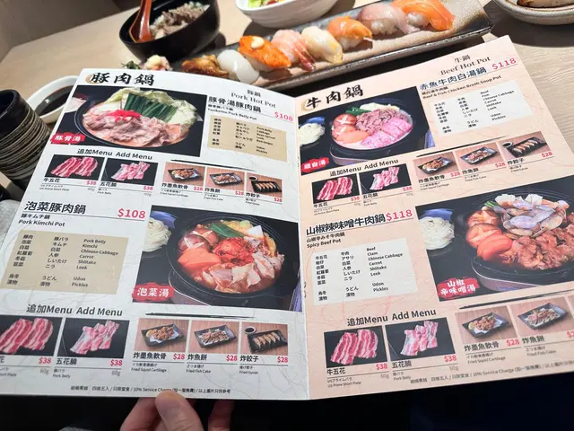 ✨壽司牛肉烏冬定食✨漬物係蓮藕片咬落脆口👍🏻事先有醃過,食落鹹鹹的✨沙律🥗沙律有生菜,粟米粒,車厘茄🌽🥬沙律有黑醋dress 過食落好清新✨是日炸物係炸薯餅🥔🔥有兩件,上菜時仲熱的🔥食落好脆口👍🏻✨牛肉烏冬🍜🐮烏冬份量剛剛好碗上有少量蔥同埋肥牛👍🏻肥牛有三片,唔算真係好肥湯底飲落唔咸烏冬食落少許彈牙🤟🏻✨壽司有十件,一字排開咁樣上菜每件都好新鮮👍🏻白飯都算大舊,食完都飽哂餐廳內部闊落通風亦好充足上菜速度都好快侍應上菜時都會放喺食客面前👍🏻唯一敗北係冇紙巾提供同埋網絡收得比較差要用佢店內wifi 先掃到QR code 落到單侍應態度一般收錢時一句多謝都冇🥲個場冇咩食客,侍應都唔會主動出來帶我入座👎🏻要由廚師提醒先慢慢行出來帶入座食物質素唔錯而唯一嘅服務就只剩得上菜👎🏻冇諗過$120 食個午餐都只係咁嘅服務態度👎🏻👎🏻…查看更多