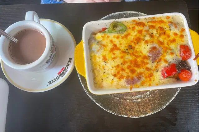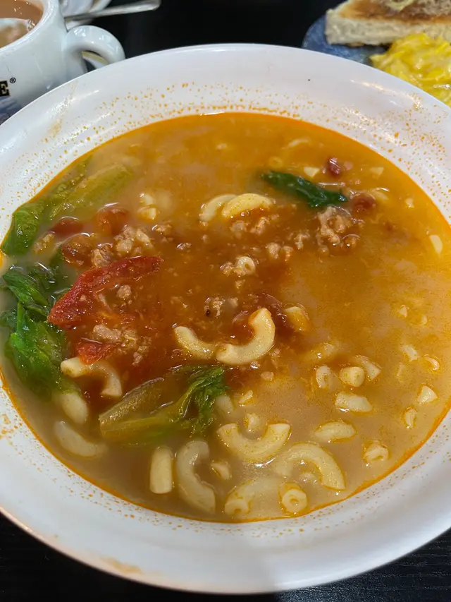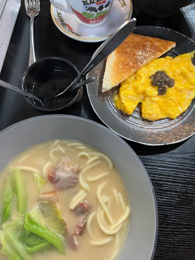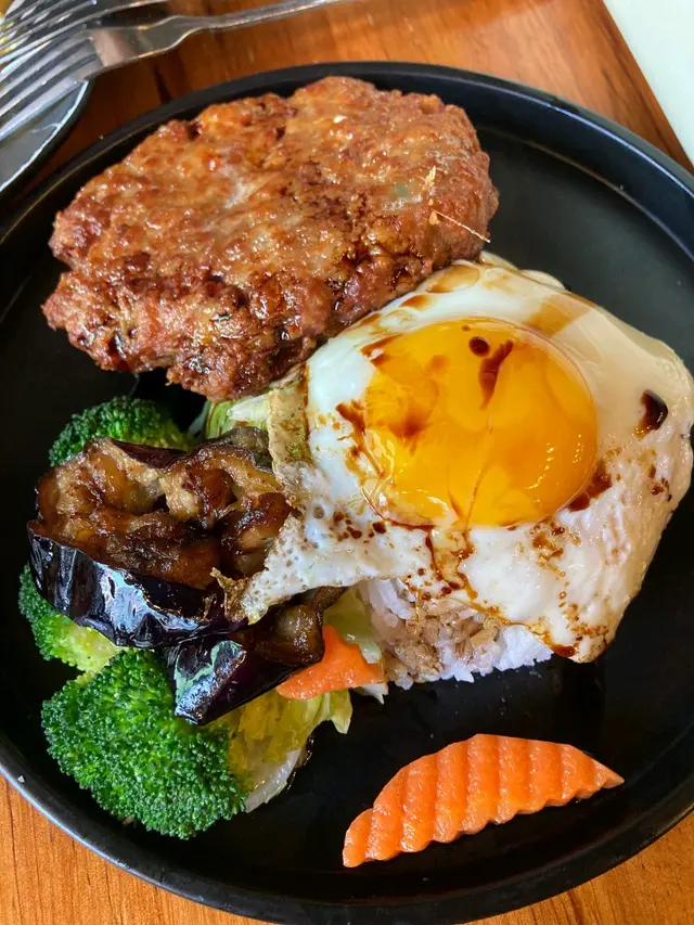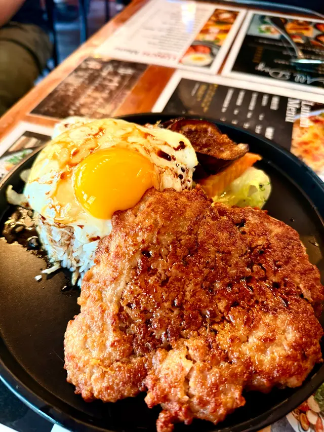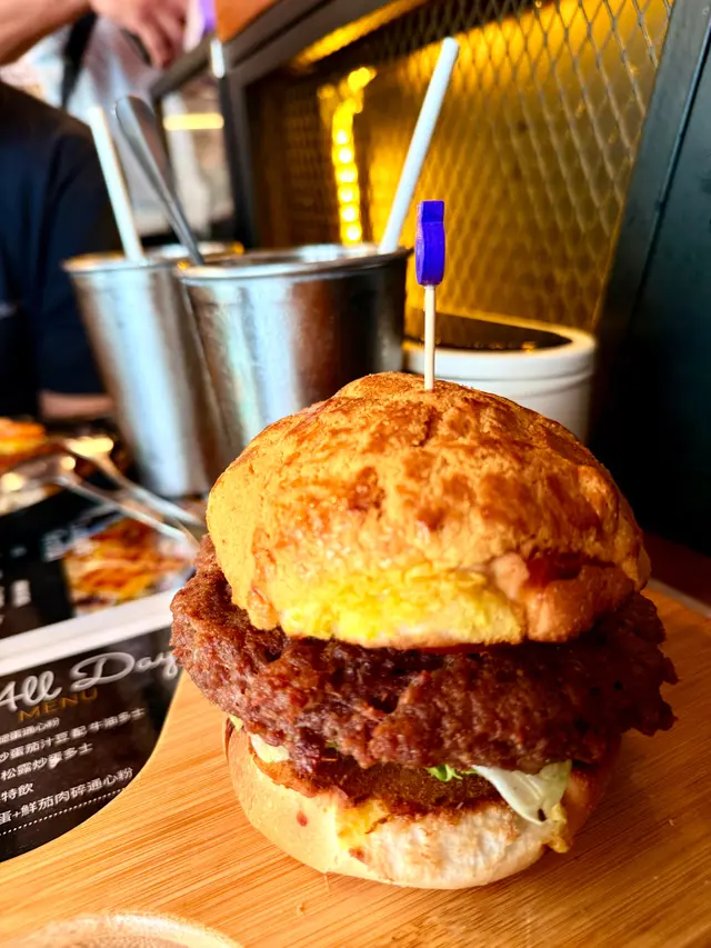 筲箕灣大街街尾的小店,店員親切,看著有很多街坊食客。這次點了一個午餐和下午茶餐。午餐是香煎肉餅旦飯,看著簡單的肉餅飯並不簡單,肉餅是外脆但內裡充滿肉汁的,肉質不乾不柴,肉味很濃,調味亦剛好,不會太咸或太濃味而蓋過牛肉的味道。配上煎旦,豉油加飯,又開胃陣飽肚,很有驚喜。另外點了一個下午茶手打牛肉漢堡包,上台是很熱辣辣的,不論是菠蘿包還是牛肉漢堡較是熱上。牛肉雖然不是非常滑,但是肉味很濃,夾在脆皮菠蘿包一起吃是另一番味道,如果以下午茶來說,是很滿足🤤…查看更多