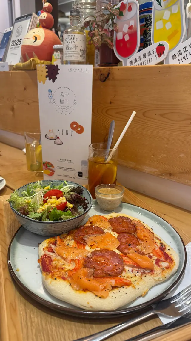 🏃🏻🏃🏻♀️🗾長洲第一站在「陳通記」食完早餐,便去了長洲戲院和海旁走走逛逛。時間過得很快,悠閒地行完海旁都已經下午一時多,誤打誤撞便找到這間「島中坊研」。☀️☀️☀️島中坊研用餐可選擇在室外或室內。由於天氣炎熱,所以最後選擇了室內,可以一邊用餐,一邊享受冷氣消暑降溫。餐廳室內環境裝修簡約,主要用了白色再配上木系色調,令餐廳有一種很濃厚的文青氛圍。🍳🥐🥗🥒🥬🥪🍞🍰🍮餐廳食物種類選擇都很多,例如:All Day Breakfast套餐、奄列套餐、牛角包套餐、沙律套餐、飛碟套餐和蛋糕甜品等等。由於來到長洲,諗住去多幾間長洲小店吃特色食品,所以最後決定叫了較輕盈的奄列套餐和牛角包套餐。🧀🌽🥓🧈🥚🍳🥐配料選擇多達13款,有芝士、粟米、咸牛肉、火腿、煙肉和蘑菇……奄列和牛角包可以各自選兩款配料。🥞🍞🍞奄列選了芝士和蘑菇配兩塊多士。奄列賣相和味道都很普通,像港式茶餐廳吃到常餐的奄列。🥐🍹📸牛角包則選了火腿和芝士。我覺得這個經典配搭一定不會覺得難食。牛角包比奄列較為出色,牛角包烘得金黃香脆,芝士處於半溶狀態,入口香脆可口。餐飲配上一杯冰凍蜜桃紅茶,樣子看似普通,但在這濃厚文青氛圍的環境,非常適合拍照打卡。…查看更多