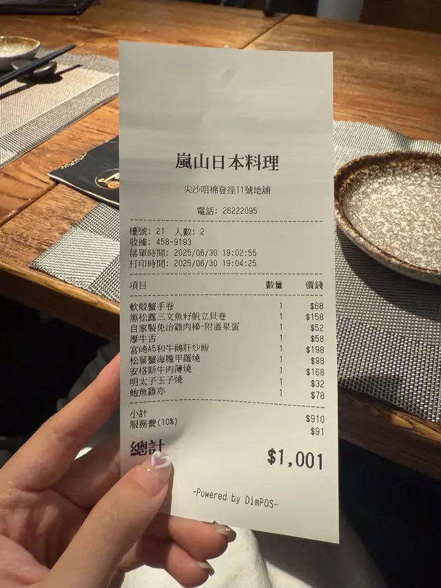 嵐山日本料理 (尖沙咀) 網上訂座享低至85折優惠兼賺Rice Dollars 網址: https://s.openrice.com/QrbS0PTm200 地址: 香港尖沙咀棉登徑11號地舖 電話: +852 26222095