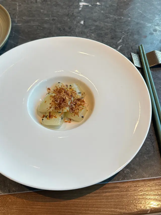 之前為咗同屋企人慶祝生日,選擇咗呢一間Airside嘅高級中菜館食晚飯。入到去已經感受到個氣派,服務同衛生都無懈可擊,位置舒適,窗外仲可以見到新蒲崗嘅夕陽景色。有好多款食物可供選擇,令人眼花撩亂。最後我哋一行三個人,叫咗梅酒啫喱鵝肝凍、北寄貝沙薑漬、五頭鮑魚各一客、二十四小時慢煮牛肋肉、松茸海膽越光米、陳年花雕醉鴿以及甜品拼盤。北寄貝沙薑漬味道好突出,至於個醉鴿有肉嘅鮮味同時亦都有酒香,母親大人讚不絕口。而個鵝肝味道好好,又唔算太油膩飽肚,但係個梅酒啫喱味道太淡,其實係可有可無。鮑魚就味道鮮甜,而且肉質好彈牙,但係我嘅家人就略嫌佢比較韌咗少少。至於個二十四小時慢煮牛肋肉,不愧係廚師推介,味道係讚不絕口。另外個松茸海膽越光米,佢哋整到好似 risotto 咁,好有心思,味道好特別,不過就接近搵唔到海膽