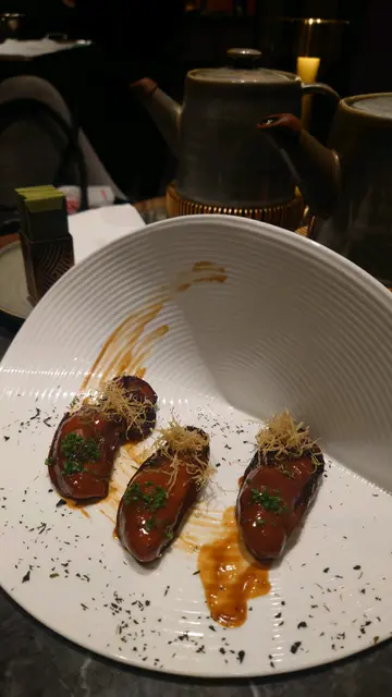 友人早前曾在此食府用餐,體驗良好,因此便召集一衆食得之人來飲茶吃點心。店家有點心餐牌,點的食物多出自於此。叫了多款點心,但率先上枱的都是一些炸點。芋角的色澤有點出人意表,形狀和味道跟傳統的芋角也有所不同,不咬開真的不知道是什麼點心!這芋角的芋蓉外皮比較薄,芋香比傳統芋角略差,但以帆立貝和肉末制作的內餡,汁料順滑而且鹹香足味。春卷的造型跟雪茄十分相似,春卷皮的厚度剛好,令春卷放久了也不容易變軟,此外蕃茄牛肉內餡不會過於流質,既能突出個別食材的本味,也保持了春卷的脆度。牛柳酥的外型和顏色在視覺上很吸引,立即令大家想揭開它的真面目,內餡的牛柳粒充滿黑椒的香氣,汁液順滑,整體是一款俱美感和美味的點心。蝦餃皮薄餡靚,蝦仁爽口彈牙,百合也清甜,混在餃皮的海苔碎大概只為提升顏值。花菇燒賣的賣相雖然平平無奇,然而肉餡的味道不錯,但花菇的存在感有點低,加了點魚籽也只是為了提高叫價。櫻花餃外形100分,餃形與色澤都是打卡之選,然而味道未見突出,尤其日本大根的味道,與蝦餃相比,更是有所不及,不用兩者同時點選。叉燒飽是閨蜜的愛品,叉燒飽汁醬香甜,包子鬆軟,肉饀的叉燒粒有點肥,否則更佳。腸粉的雞肉餡料調味適中,但煙燻味道很淡和有點油膩,幸好腸粉皮順滑不黏牙,趁熱下肚,令人飽足。鳳爪燜得恰到好處,口感膠糯,輕輕一咬便能骨肉分離,以板栗代替花生令醬汁更黏稠和香甜。叉燒的邊角都燒得微微焦香,肉質軟腍但有嚼勁,除了醃料外,叉燒的表面塗了一層頗厚的糖漿,令叉燒甜上加甜。石獅的外形精緻,黑芝麻味道濃郁,甜度適中,是一個內外兼備的甜品。…查看更多