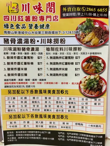 川味閣 (馬鞍山) 網址: https://s.openrice.com/QrbS0pIeB00 地址: 香港馬鞍山鞍誠街8號MOSTown Street新港城中心大街(3期)地下G-3/12&33號舖 電話: +852 28656055