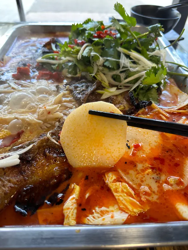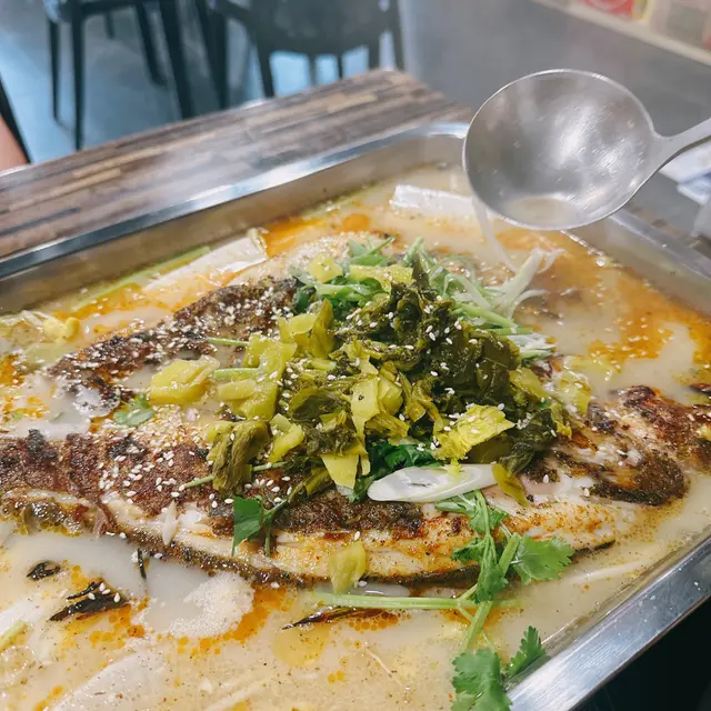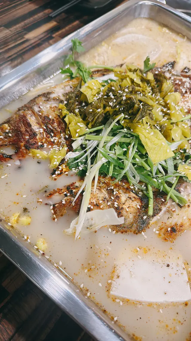 #christine開飯日記 [🍲貼地高質烤魚大王]放假去左大圍行街,行下行下就去左隆亨邨度搵嘢食。隆亨邨都有幾多特色小店,零食店、小食店應有盡有。我地就上網搵到依間「川味雞烤魚大王」,因為我地去嘅時間比較早,所以唔洗等位就可以入座🤭不過聽伙記講平時都好爆場架🌟酸菜烤海鱸魚($268)烤魚口味方面佢都有好多選擇:重慶泡椒烤魚、剁椒烤魚、麻辣烤魚同埋酸菜烤魚。我地就揀左唔辣嘅酸菜烤魚。海鱸魚嘅肉質好嫩滑,一啲都唔會實的的🤭加上酸菜嘅調味,令到成件事更加惹味,酸酸甜甜咁都幾開胃。啱開一家大細食😍佢嘅份量都唔少架。2個人食一條魚已經夠晒飽👍除左烤魚,佢都仲有幾多配料,例如:蘿白、娃娃菜、豆芽等等🌟芋絲($18)我地另外仲叫左一碟芋絲,芋絲熱量低之餘,仲要好嗦湯😍吸晒湯底嘅精華,認真正🌟百香果沙冰($26)男朋友就叫左佢地嘅特色沙冰,百香果酸酸甜甜咁同烤魚都幾夾😍不過好可惜大圍店,做到今個月月尾就約滿。不過佢地荃灣都仲有分店,大家都去荃灣店支持下啦🥰🍴川味雞烤魚大王 (大河道) (荃灣)📍荃灣大河道91號天保大廈地下F1號舖…查看更多