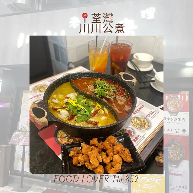 荃灣有幾間比較出名,而且好食嘅川菜餐廳。川川公煮就係其中一間😁😁叫咗兩個午餐,一個係酸菜魚,一個係孜然羊肉飯。酸菜魚湯底濃郁又唔會過油,酸菜夠酸,軟硬適中,魚片嫩滑好食,配菜亦都十分豐富,有薯粉同埋豆芽😛😛🤗孜然羊肉飯都幾多羊肉,用咗大蔥同埋孜然醬汁翻炒,但唔會過鹹,十分好食。師傅炒得好有鑊氣,完美地將各種配料混合羊肉,係一道超好下飯的小菜🌟🌟👍見到佢都仲有烤魚雞煲等其他小菜,應該都算係佢餐廳嘅招牌,有機會都想試埋佢哋🤤🤤🤤…查看更多