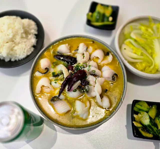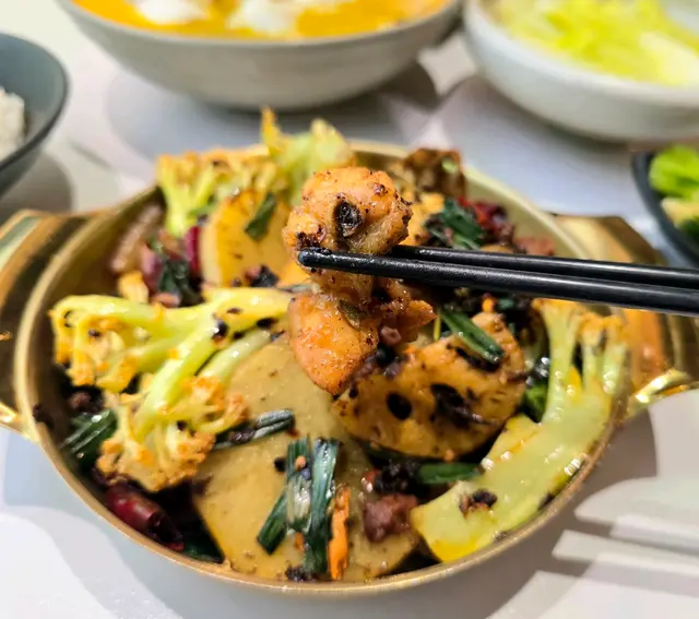 店面不大,满共10张桌子,中午饭点过来,一直都没有坐满,大部分都是1个人吃个午饭就走,也有2个朋友小座聊天的。午市套餐可以说很便宜,还免掉加一服务费,选了个肥肠香锅,想试试川菜的功底如何。非常炸的干干的,少了滑嫩的感觉,但是干香味比较到位,铜质(表面看起来是铜质)小锅盛放,吃到最后都还是热的,配菜是土豆片和洋葱片,比较下饭,不过略微干一点;小菜是一小碟(真的是小蝶)腌黄瓜,味道还可以,可以找老板要一杯水,有配纸巾。收费不能八达通,但可以微信支付宝,感觉首选还是带现金。…查看更多