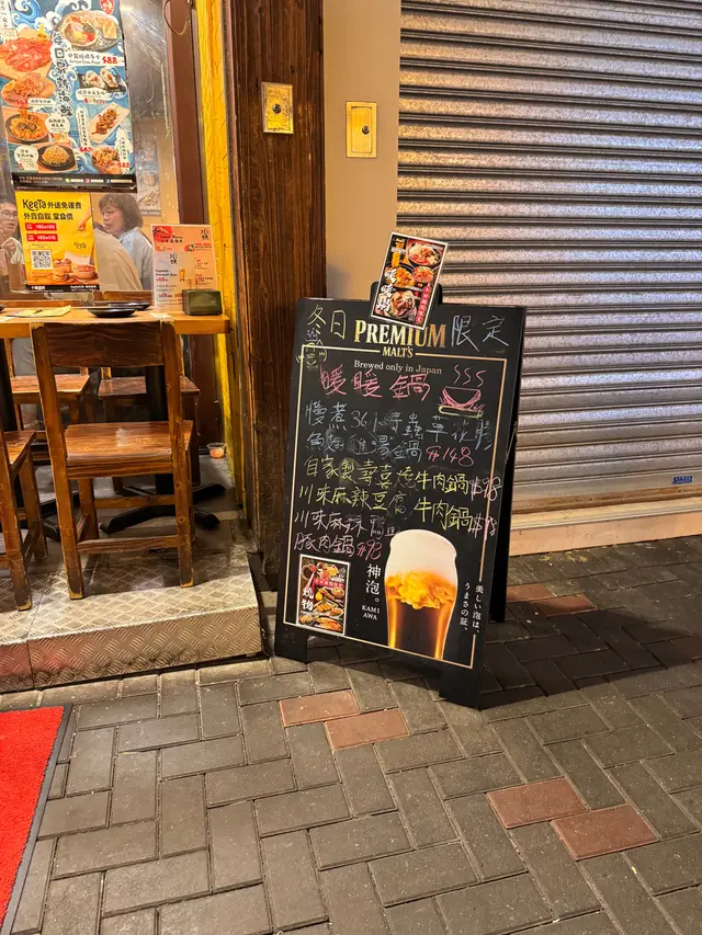 雖說是主打串燒場、酒場但他們火鍋還不錯!!我們點的是麻辣豆腐牛肉火鍋~湯🥣 底一點都不紅 還以為輕鬆吃😂誰知這還辣得滿爽的~~~ 還有花魚一夜干😆遠遠就已經聞到他的香氣🫰再來羊肉串 又羶😋孜然味又濃 愛💗到不行而雞軟骨才$10一人一串也行 哈哈哈😆他們串燒行例中還有一項「炸芝士🧀️ 年糕」 要吃!!外皮超薄 年糕超好咬 芝士 🧀️ 量還不少Oh 燒雞泡魚乾才$20能想像嗎🤫 自己買也不止整桌串燒 三杯大杯啤酒🍻 一杯梅酒這樣收據 🧾 上也不過$1000 😂 銅鑼灣耶 太佛了吧(我們還點了朱古力窩夫雪糕 台 chewy 中間還有brownie🧡