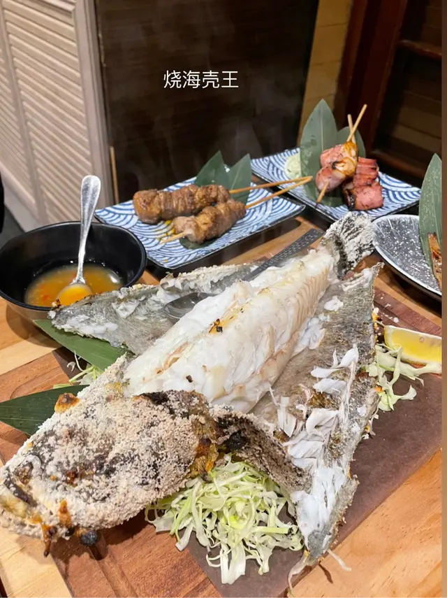 跟朋友突然起串燒癮發現這裏居然有$10一串的優惠??!!馬上就去吃了!可以超爽吃好開心!燒雞軟骨、燒海蝦、燒墨魚餅等也才$10/串!燒金菇肥牛、鰻魚等$15一串還有很多串燒如豬頸肉、芝士年糕是$20一串真的超划算!!時令海鮮類例如蟶子皇、干貝等是$68一隻但很值得點!滿滿的蒜蓉很香很好吃干貝一上桌被嚇到🤯真的太大一個了😋😋他們也有很多其他的選項,例如燒法式鵝肝多士(HK$88)、甲羅燒多士(HK$88)也很香再配上兩杯清爽的飲料 美好的晚餐