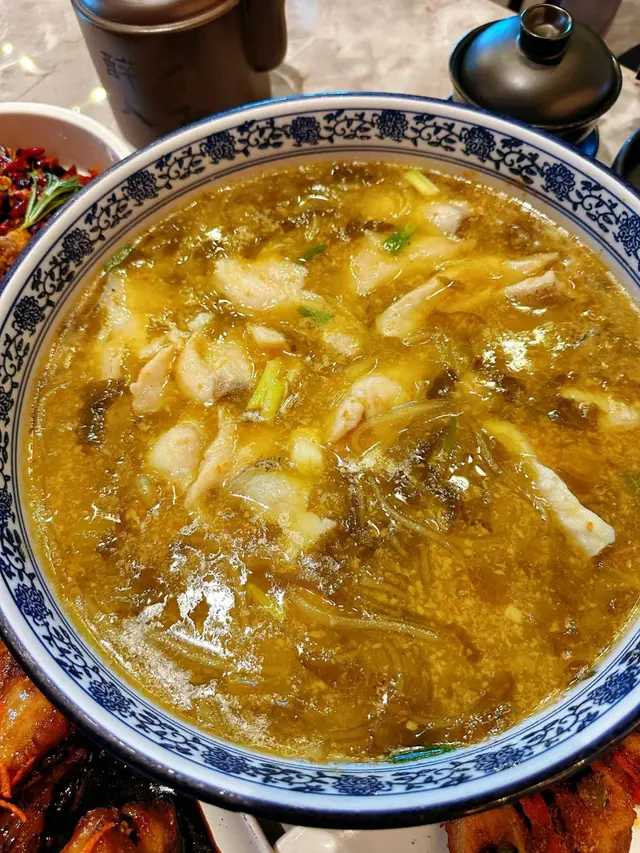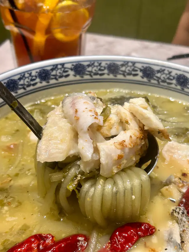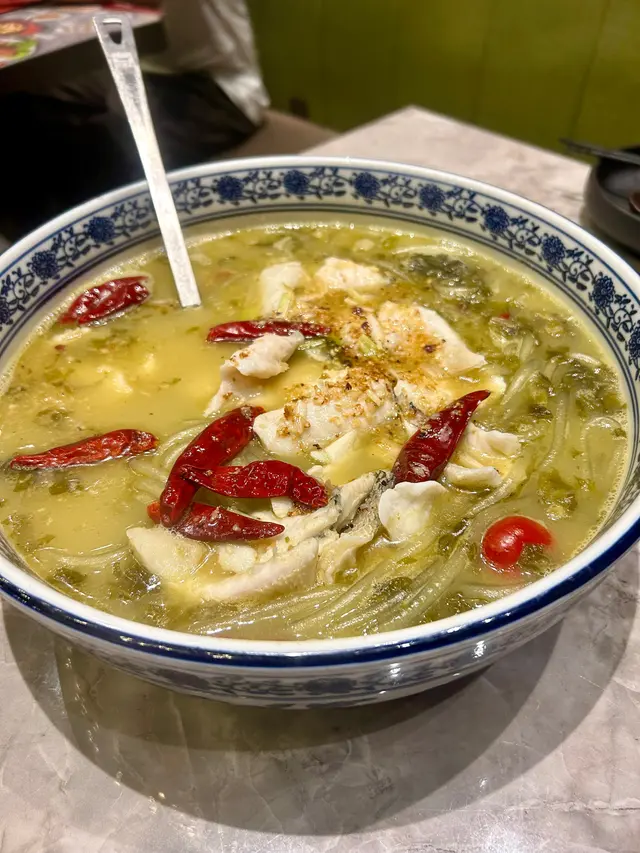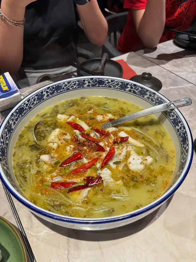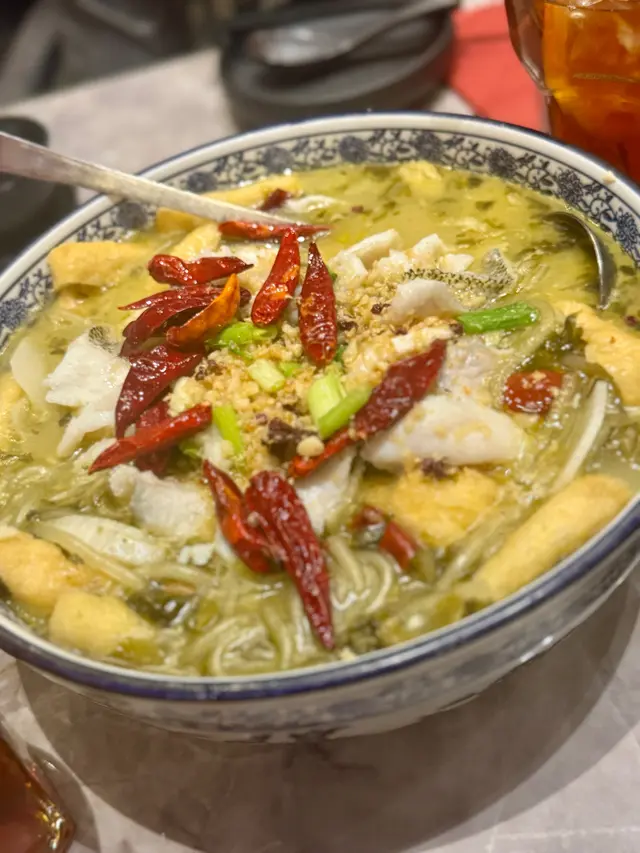 琴日平日12點去咗食酸菜魚。係返工時間,但係都有五六枱人客, 算係有人流。叫咗個唔辣嘅酸菜魚, 另外再叫咗個招牌炒飯。上菜速度正常,酸菜魚裏面已經有粉,個粉係粗身已經入晒味, 同埋好煙靭, 係會想再添嗰種😋。啲魚佢有分普通同埋桂花魚揀, 今次叫咗普通, 佢味道十分濃郁,老人家就會覺得鹹咗啲。同埋個魚會連埋啲魚皮感覺好新鮮, 二人份量$268喺朗豪坊嚟講唔算貴。桂花魚就328下次會試吓。佢嘢飲做緊第二杯半價, 本來想試水果茶, 但可惜唔飲得凍嘢。會有茶芥, 佢嘅茶杯係好似功夫師傅用嘅會有個蓋要慢慢飲先至可以格到啲茶渣, 因為佢啲茶葉全部放晒落個茶杯度,所以有少許麻煩,但可能係特色。埋單$468二人用, 呢個價錢喺商場裏邊都叫可以接受。呢度氣氛好好, 靜靜地光線又調暗, 係舒適嘅地方。查看更多