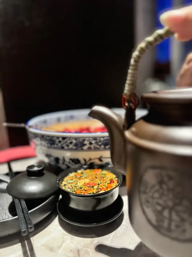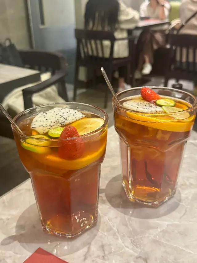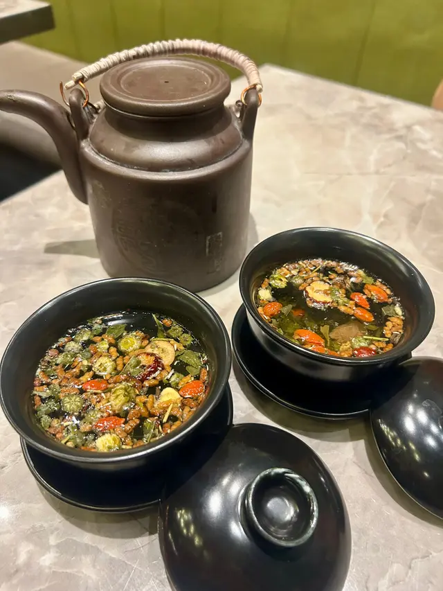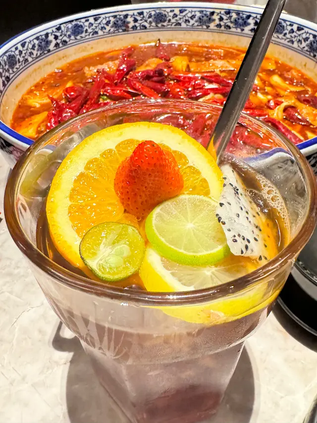 每枱送上八寶茶,有菊花、杞子、玄米等等,飲起嚟清爽。手拍黃瓜木耳酸酸甜甜嘅,黃瓜好爽脆開胃南充特色酸菜魚我哋揀咗鱸魚,小辣酸菜魚好大一盆㗎,份量好多鱸魚好大塊,魚肉厚實鮮美,好好食底下有薯粉,吸滿湯汁湯底夠酸,又好香老四川樟茶鴨色澤紅潤,茶色外皮有淡淡嘅樟樹茶煙香氣好入味,肉質結實鴨味香濃,唔油唔膩清炒五色蔬有茄子、蓮藕、紅蘿蔔、豆角蓮藕爽甜脆口,紅蘿蔔清爽茄子軟糯,豆角甜味,口感豐富水果茶,好大一杯有火龍果、橙子、青檸,清甜好飲查看更多