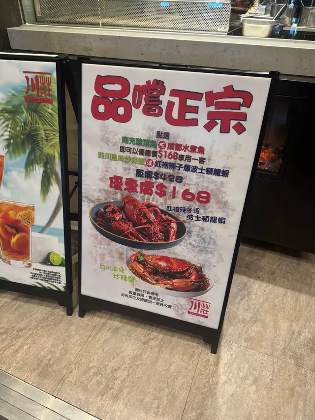 今日去朗豪坊市集,順便打算用埋上次張$200現金券,所以同朋友再次黎幫襯,門口見到做緊推廣,叫酸菜魚加$168就可以加一隻辣爆龍蝦,於是乎,我地叫左個酸菜魚,加左隻龍蝦,仲叫左個辣嘅肉碎生菜包,酸菜魚一如以往,味道剛剛好,魚肉嫩滑,底配嘅薯粉吸晒酸菜嘅味道,非常開胃惹味,跟住龍蝦黎到,一啲都唔細隻,相信街市買都要百四五蚊,所以覺得非常抵食,味道仲好好味,重點係唔太辣,好味!呢個生菜包好似去食泰國菜咁,但味道比泰國菜果個乾身好多,包住生菜包黎食,辣味出晒黎,口感清新!抵讚!至於服務方面,啲員工都幾好禮貌,當晚食左差唔多2個鐘,見佢門口有人等位,但都無埋黎叫我交檯,可能而家生意難做,不過都值得再次幫襯。我同朋友食得都非常飽👍🏻👍🏻👍🏻👍🏻👍🏻查看更多
