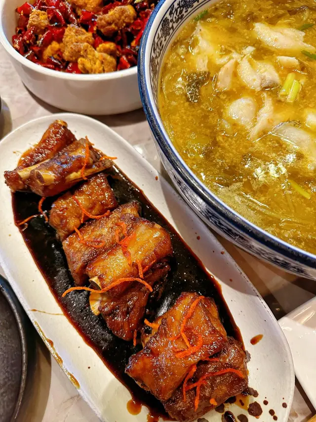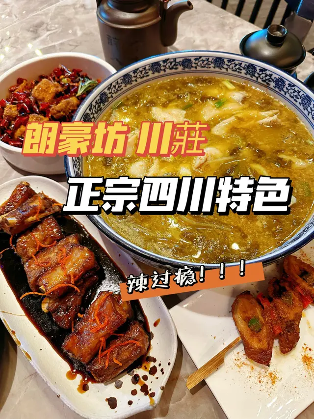 对于川菜一直是情有独钟尽管挤不出时间真正去四川当地品尝但是香港正宗的川菜馆我也是常客之一 每次来朗豪坊想吃川味的时候必定会光顾这家川莊他家的招牌水煮鱼和酸菜鱼真的很顶很正宗 他家的八宝茶我也很爱喝,解辣又解腻~引入的四川四色四辣调味粉也是一大特色! 🌟 招牌南充酸菜鲈鱼例牌来了一定会点的招牌菜之一南充特色酸菜是出名的好吃,可以说它是酸菜鱼的灵魂正因为有它为底,搭配鲜美的鲈鱼口感才酸香鲜美,酸辣可口而且鲈鱼肉鲜嫩没有刺,一点都不腥这道招牌菜大力推荐! 🌟四川保宁醋香排骨也是四川传统的菜肴之一了,排骨是肋骨排骨,我最喜欢吃这种排骨了味道酸甜可口,蘸取醋香汁,真的很解馋和下饭~🌟简阳辣子羊肉一上桌就看到羊肉和干红辣椒满满一盆简阳的辣子羊肉吃过的人一定忘不了羊肉很嫩,非常入味,带有麻辣的口感真的麻辣鲜香,很有四川特色~ 🌟肥美猪大肠串(香辣)大肠肥美,处理的很干净外皮烤的酥脆,辣的很爽口~ 📍 川莊地址:旺角亚皆老街8号朗豪坊12楼12号铺(港铁旺角站 C3 出口, 港铁旺角站 E1 出口, 港铁旺角东站 B 出口)查看更多