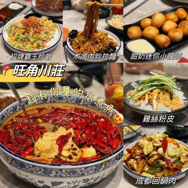 🔻珍寶水煮魚 $288魚肉鮮嫩多汁,配菜豐富,湯汁濃郁香辣🌶️配料有:午餐肉、萵筍、蓮藕片、水晶粉皮😆🔻霸王炒飯|$118啲飯粒粒分明,一上菜就好香😍飯上面仲有櫻花蝦,好有口感!🔻木須肉炒拉麵|$115本身以為平平無奇,點知都幾有驚喜😳🔻甜奶迷你饅頭|$42外脆內軟,點煉奶,一啖一粒🤩🔻雞絲粉皮|$88外面有粉皮係用芝麻醬不過依個係正宗麻醬😍超好食🔻成都回鍋肉|$115送飯一流,好惹味😌查看更多