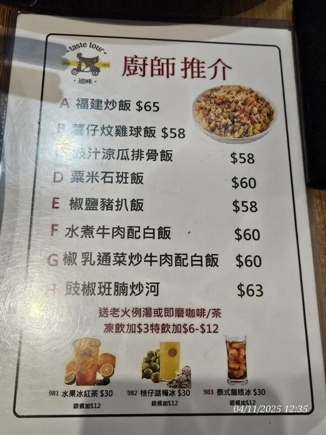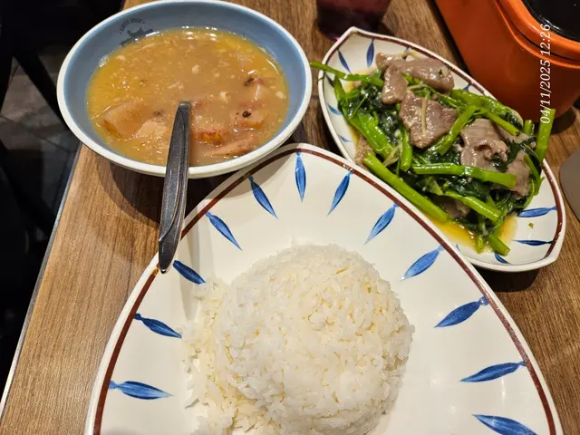 有菜有肉有質數巡味系油麻地食過好多次早餐都中上,今日去完荃灣AEON,行過見到咪試下,午餐選擇都好多。味道(4分)$60椒絲腐乳通菜牛肉飯($60)- 因為吾食辣同吾想咁咸,問下伙計話OK,雖然肥肥地女侍應態度一般,但茶餐廳算啦。- 炒菜系另上,吾系碟頭飯,攞分- 菜同肉分量都好夠- 菜系用幼通菜,吾硬,- 肉都好大塊同淋,雖然無乜牛肉味。- 腐乳真系落少左,味道幾好,又入味。- 例湯系粉葛豬肉湯,好濃,粉葛超淋。環境(2分)-第一舖位吾大,座位偏多,所以位同位之間好窄。…查看更多