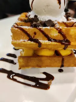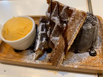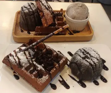 昨晚男朋友提議去食甜品,諗起之前經過呢間甜品店,門口寫住一律$45,今日心血來潮就去幫襯下啦!當時已經係十一點幾,仲驚會唔會已經收舖,點知去到好多人,岩岩得返一張二人枱,睇嚟好受大家歡迎。一坐底睇menu都揀咗一陣,款式唔算太多但我會話有齊基本款,而且仲好貼心咁可以combo (都係$45咋),適合有選擇困難症嘅我,最後我地叫咗心太軟雪花冰&立法會大樓,一次過試哂心太軟、雪花冰、窩夫。心太軟轉咗做綠茶味 (+$6),有香濃的茶味;雪花冰係芒果味,好清新,又係冰火的組合食心太軟最期待的畫面,入面嘅綠茶軟心真係湧出嚟架,只係略嫌太甜,可以減返少少糖就好了立法會大樓其實係兩層的窩夫,中間夾住芒果肉,上面揀咗豆腐味雪糕。窩夫外觀金黃,入口鬆脆,有基本的朱古力和糖霜,加埋芒果感覺都好清新;反而豆腐雪糕食唔到有豆腐味,而係好濃的cream味,都唔錯!…查看更多