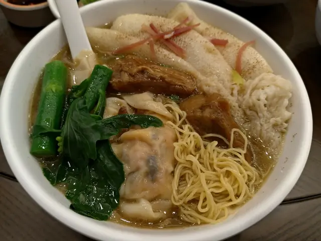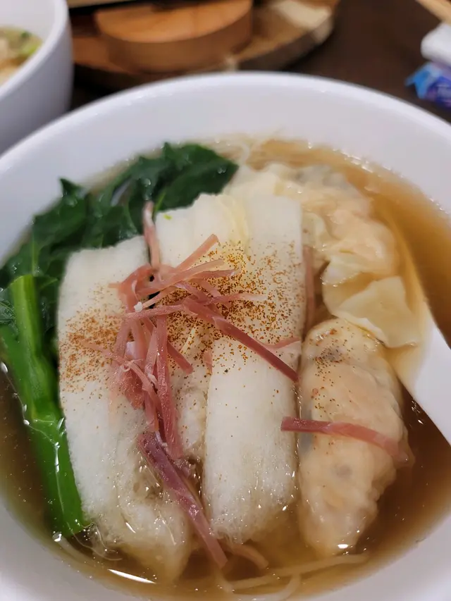 Extremely value for money Chinese rice noodle !3 toppings for just below $50!Am amazed by the portion as wellI ordered wanton , tendon balls and cutter fish ballsIt arrived with a total of 6 wantons and 2 of each ballsWhich is unbelievable with this priceThe balls are huge , chewy and freshTendon balls are full of flavours as wellMy friend ordered the pork liver and it’s cooked so perfectly that it’s slightly pinkish at the inside and extremely moist Braised beef tendon is another must have It’s full of collagen and perfect for ladies As a bonus you can have a full bowl of turnips hiding right underneath the tendon that have fully soaked in the broth 查看更多